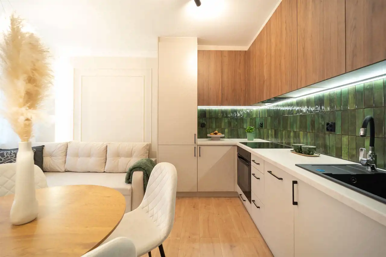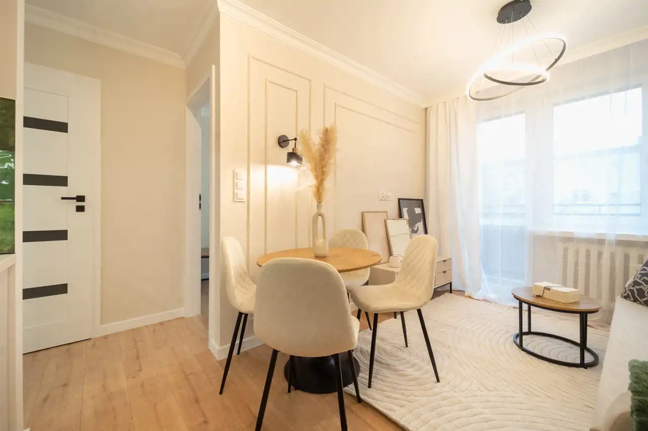 Lokal przeszedł generalny remont, całość wykończenia tworzy funkcjonalną, elegancką i klimatyczną przestrzeń do życia.