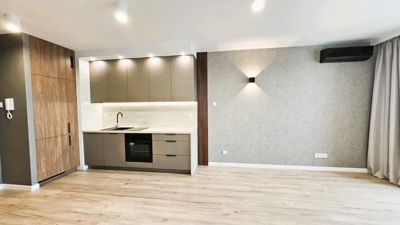 - kuchnia w pełni wyposażona w nowe sprzęty AGD na gwarancji: zmywarka, płyta indukcyjna, piekarnik elektryczny, okap, lodówko-zamrażarka