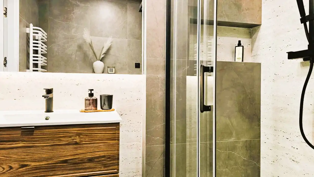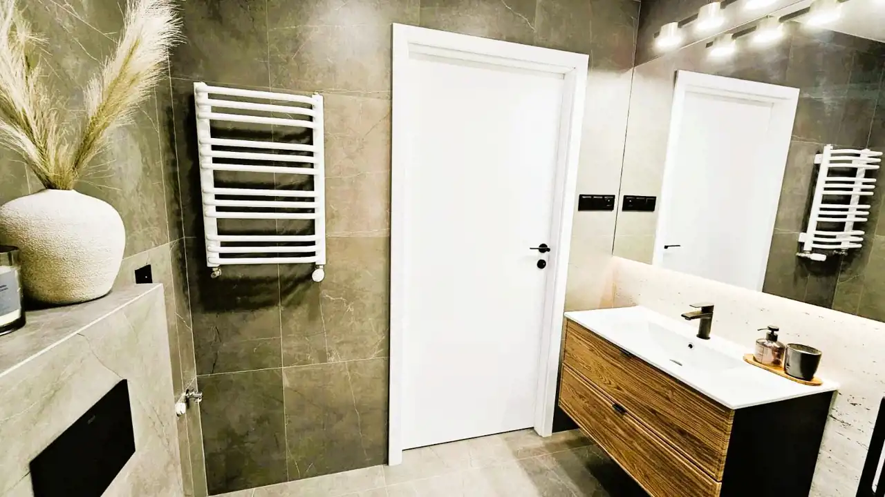 - bezprzylgowe drzwi wewnętrzne z czarnym obramowaniem (ukryte zawiasy, zamek magnetyczny)