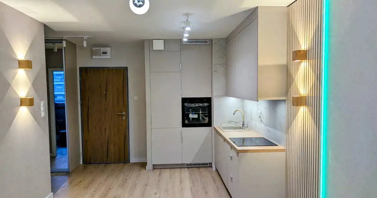 Kuchnia zabudowana wraz ze sprzętem AGD (lodówka, zmywarka, piekarnik, płyta indukcyjna, okap wszystko oczywiście na gwarancji)