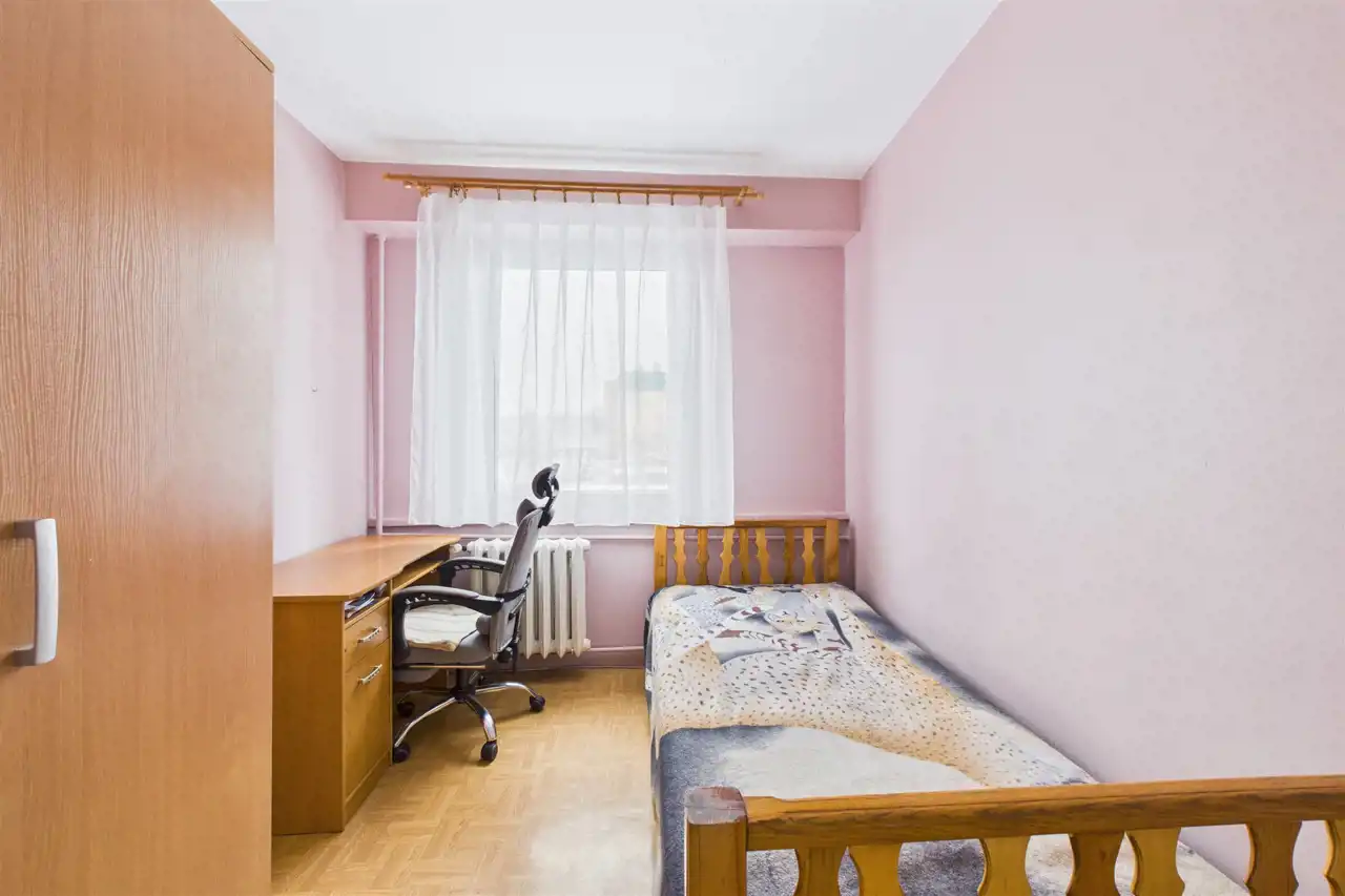 Układ mieszkania został przemyślanie zaprojektowany – pierwotnie czteropokojowe, obecnie oferuje przestronny salon, dwie wygodne sypialnie oraz dużą kuchnię z jadalnią. Taki układ zapewnia więcej przestrzeni do wspólnego spędzania czasu, a jednocześnie gwarantuje prywatność domownikom.