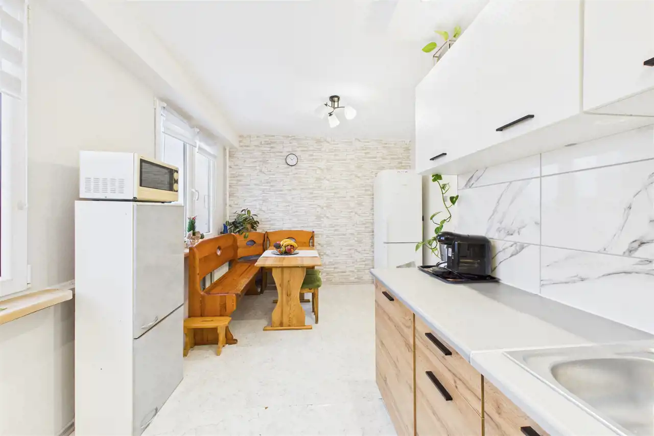 Przestronny salon to serce domu – idealne miejsce na rodzinne wieczory i spotkania z bliskimi. Dwie osobne sypialnie zapewnią prywatność każdemu domownikowi, a kuchnia z jadalnią stanie się ulubionym miejscem wspólnych posiłków. Balkon typu koszyk pozwoli Ci cieszyć się poranną kawą na świeżym powietrzu.