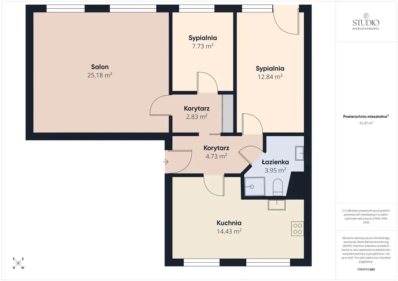 Mieszkanie o powierzchni 73,6 m² oferuje przemyślany układ, który z łatwością dostosujesz do swoich potrzeb.