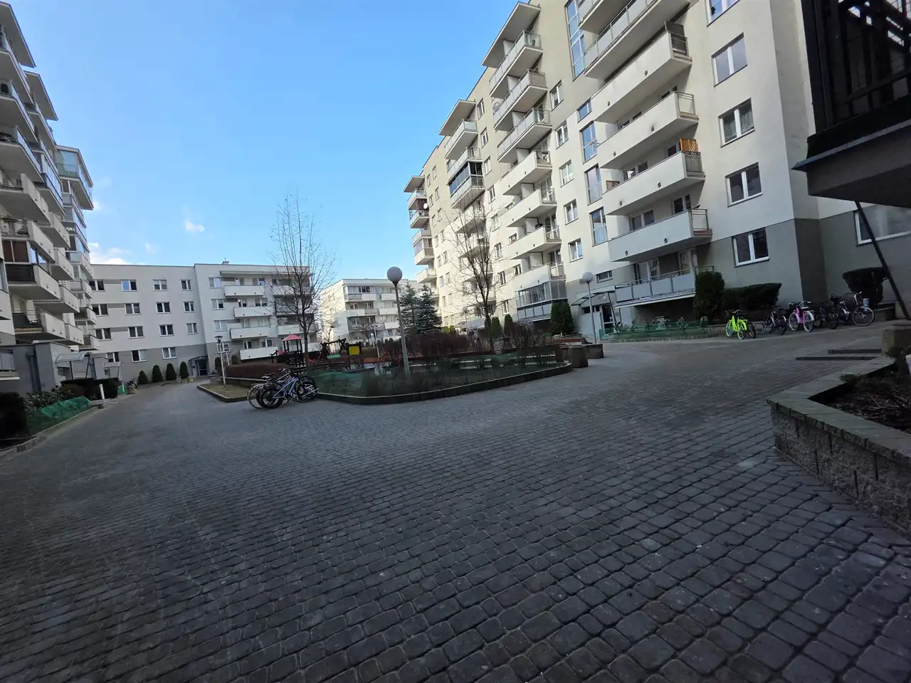 Atutem nieruchomości jest zadbany, wewnętrzny dziedziniec dostępny wyłącznie dla mieszkańców, z placem zabaw oraz zielenią, co zapewnia komfort wypoczynku i bezpieczeństwo.