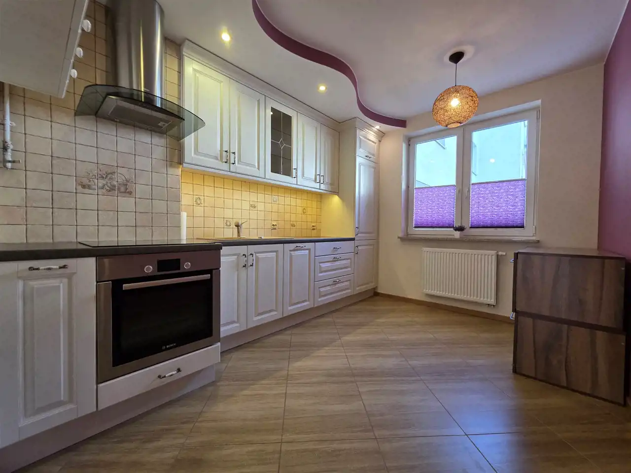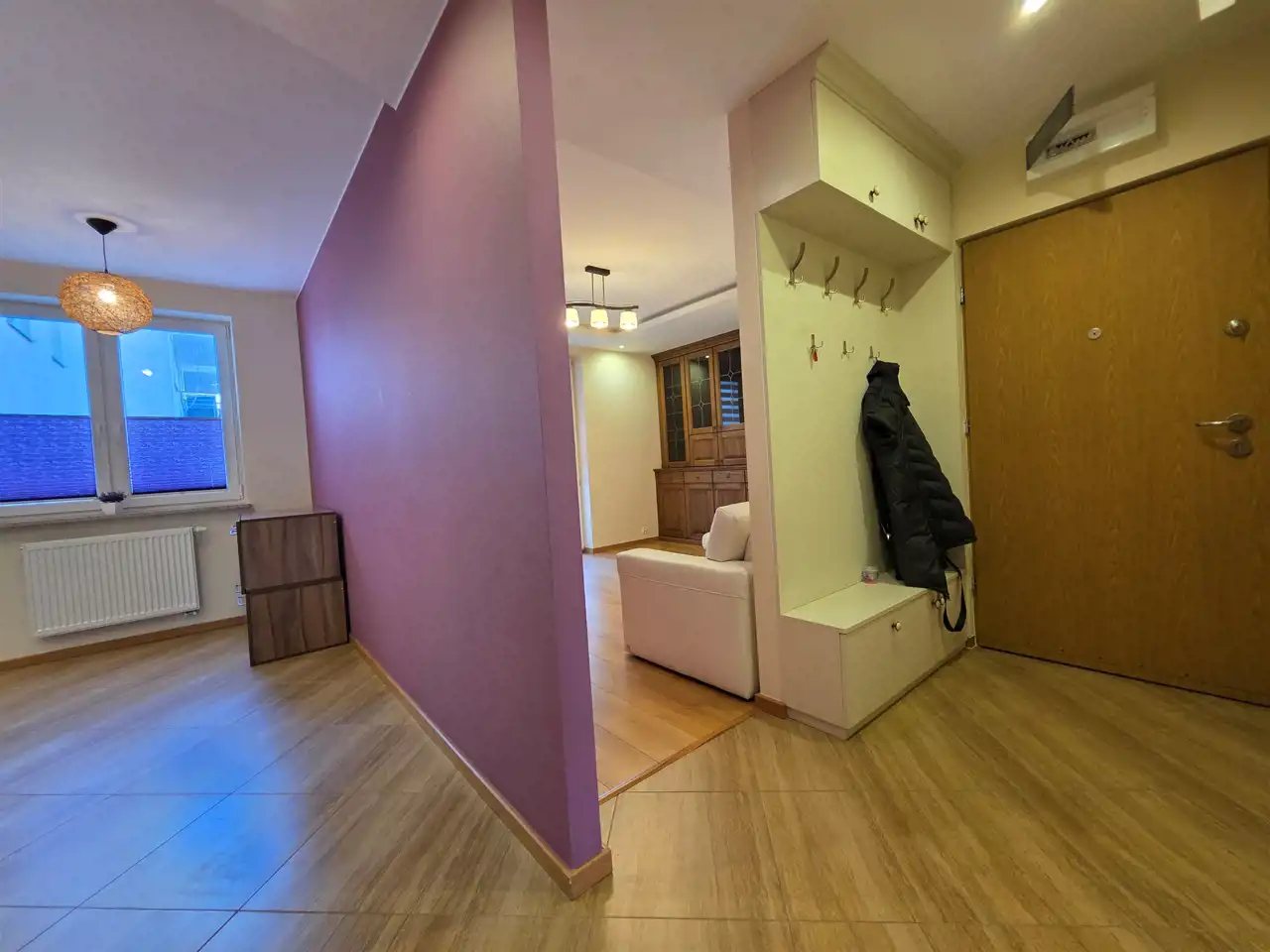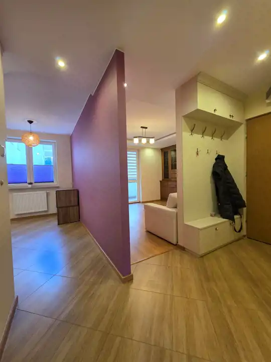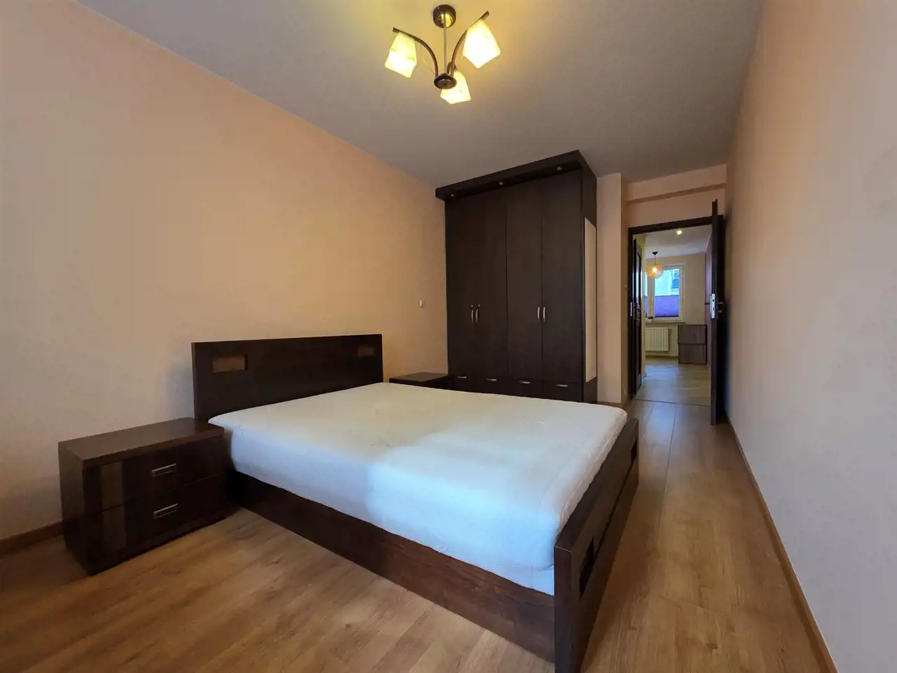 Lokal wyróżnia się bardzo praktycznym układem pomieszczeń — składa się z dwóch odrębnych, ustawnych sypialni oraz dużej, oddzielnej kuchni, co zapewnia wygodę zarówno dla rodziny, jak i pod wynajem. Dzięki takiemu rozkładowi mieszkanie daje poczucie przestrzeni i prywatności.