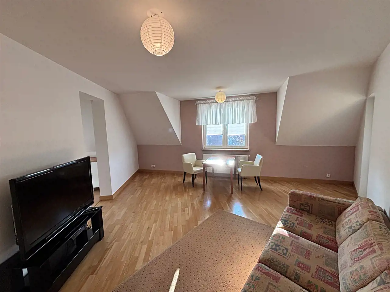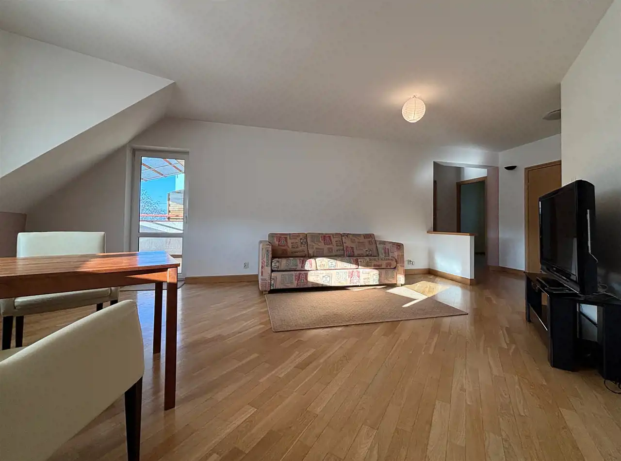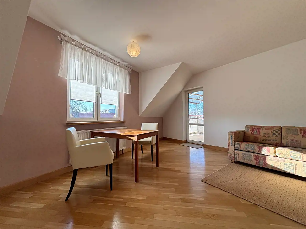 Na powierzchni 63 m2 do dyspozycji właściciela pozostaje pokój dzienny tworzący spójną, otwartą przestrzeń z przedpokojem i półotwartą kuchnią, dwie sypialnie, dość duża łazienka (z wanną i kabiną prysznicową), osobne WC i garderoba. Z balkonu rozpościera się widok na zieleń i niską zabudowę. Na uwagę zasługuje również dokonale utrzymany parkiet dębowy (w pokojach i przedpokoju).