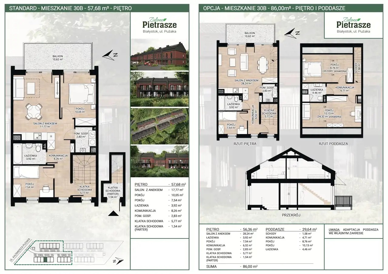 Oferujemy do sprzedaży mieszkanie 3- pokojowe 30B o powierzchni 57,68 m2 w budynku w zabudowie szeregowej w trakcie realizacji.