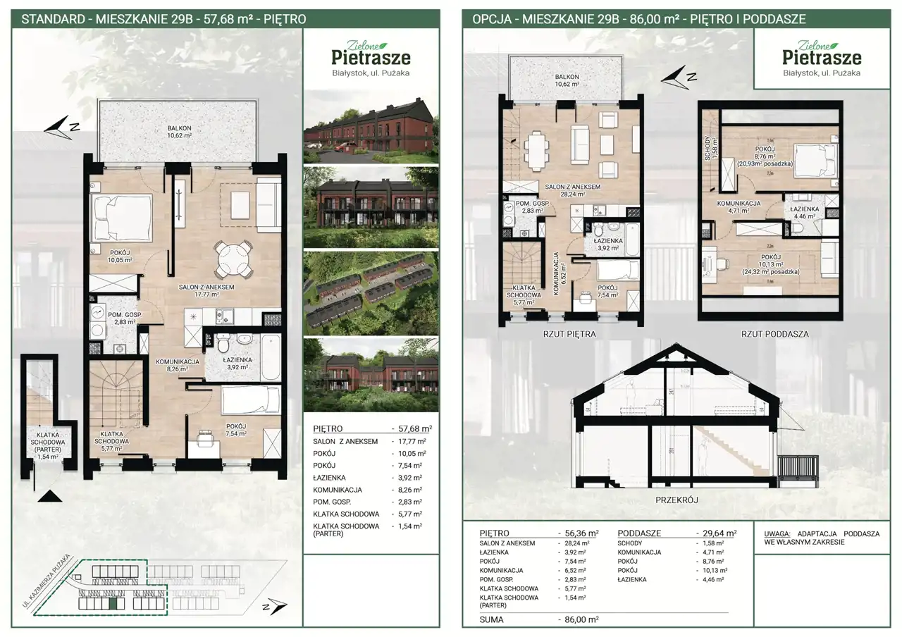 - poddasze o powierzchni 29 m2 z możliwością adaptacji na cele mieszkalne