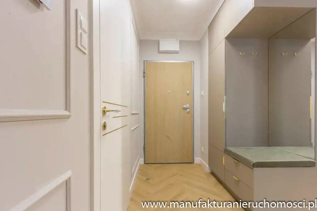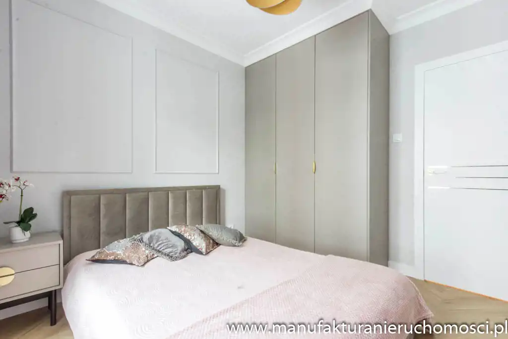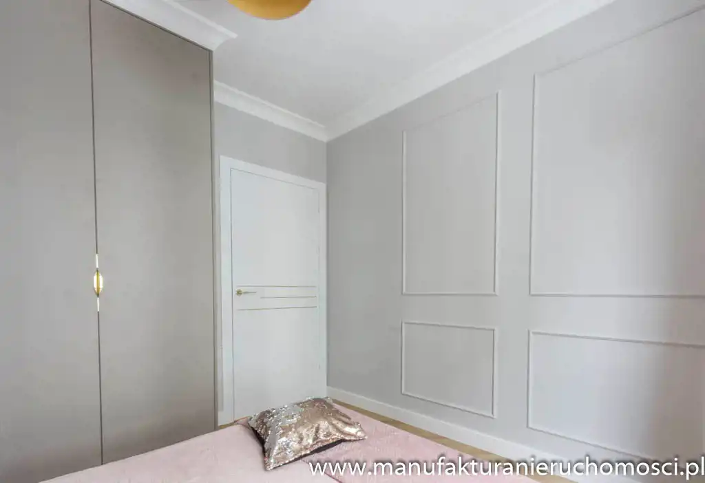 Pastelowe kolory, złote dodatki, solidne, bezprzylgowe, malowane drzwi, wszystko doprecyzowane w każdym calu tworzy spójną całość, w której miło się spędza czas.