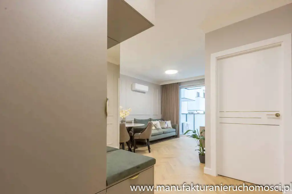 Mieszkanie posiada także pojemne zabudowy i klimatyzację.