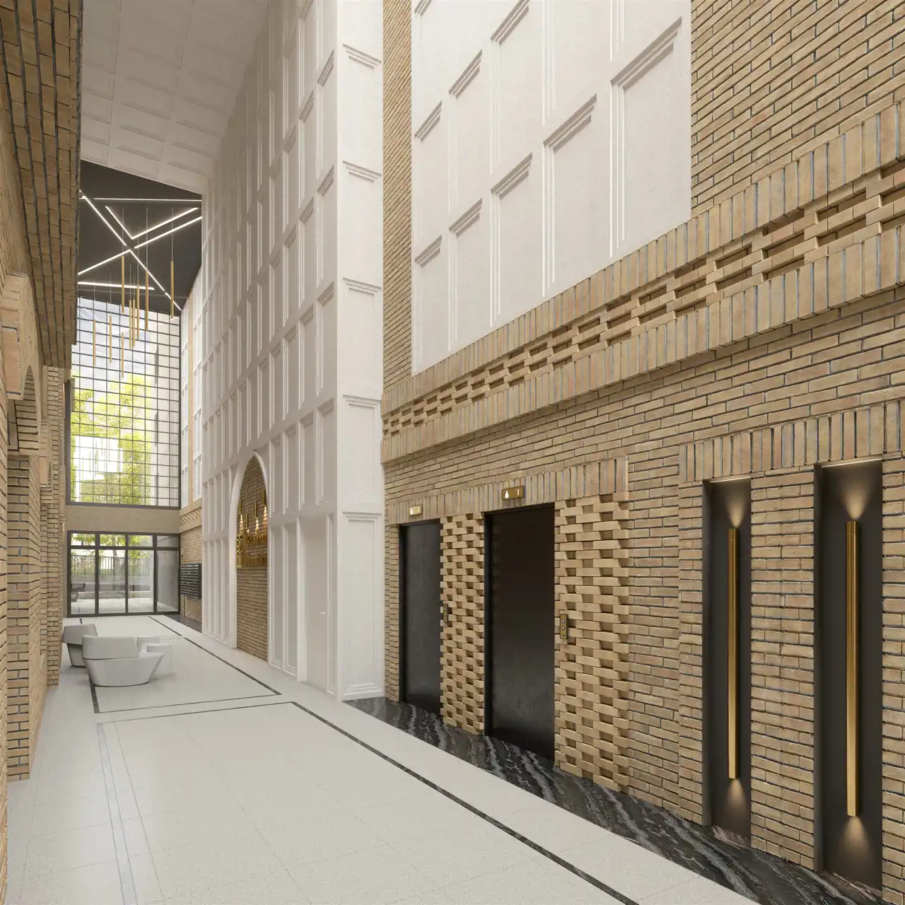 Reprezentacyjne atrium i starannie zaprojektowane części wspólne.
