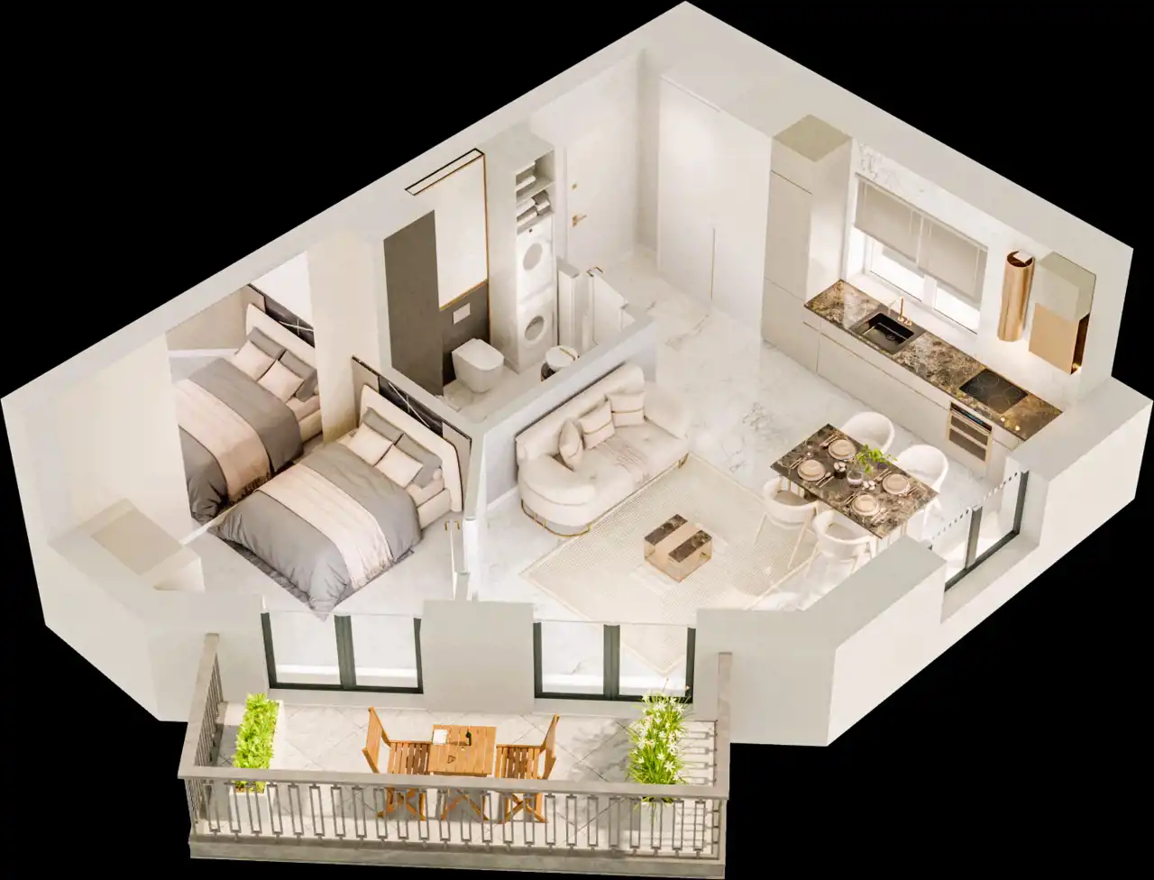 To luksusowe apartamenty na najwyższych kondygnacjach, z panoramicznymi widokami na Białystok i przestronnymi tarasami. To synonim prywatności, elegancji i absolutnego komfortu.