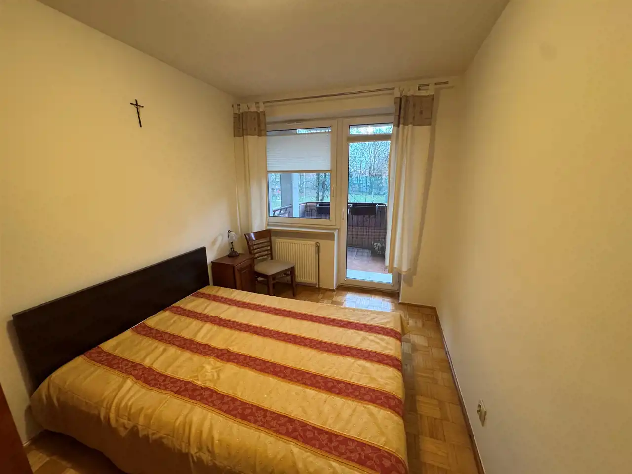 Mieszkanie składa się z dwóch oddzielnych sypialni, aneksu kuchennego połączonego z salonem, łazienki i korytarza. Do nieruchomości przynależy balkon oraz piwnica.