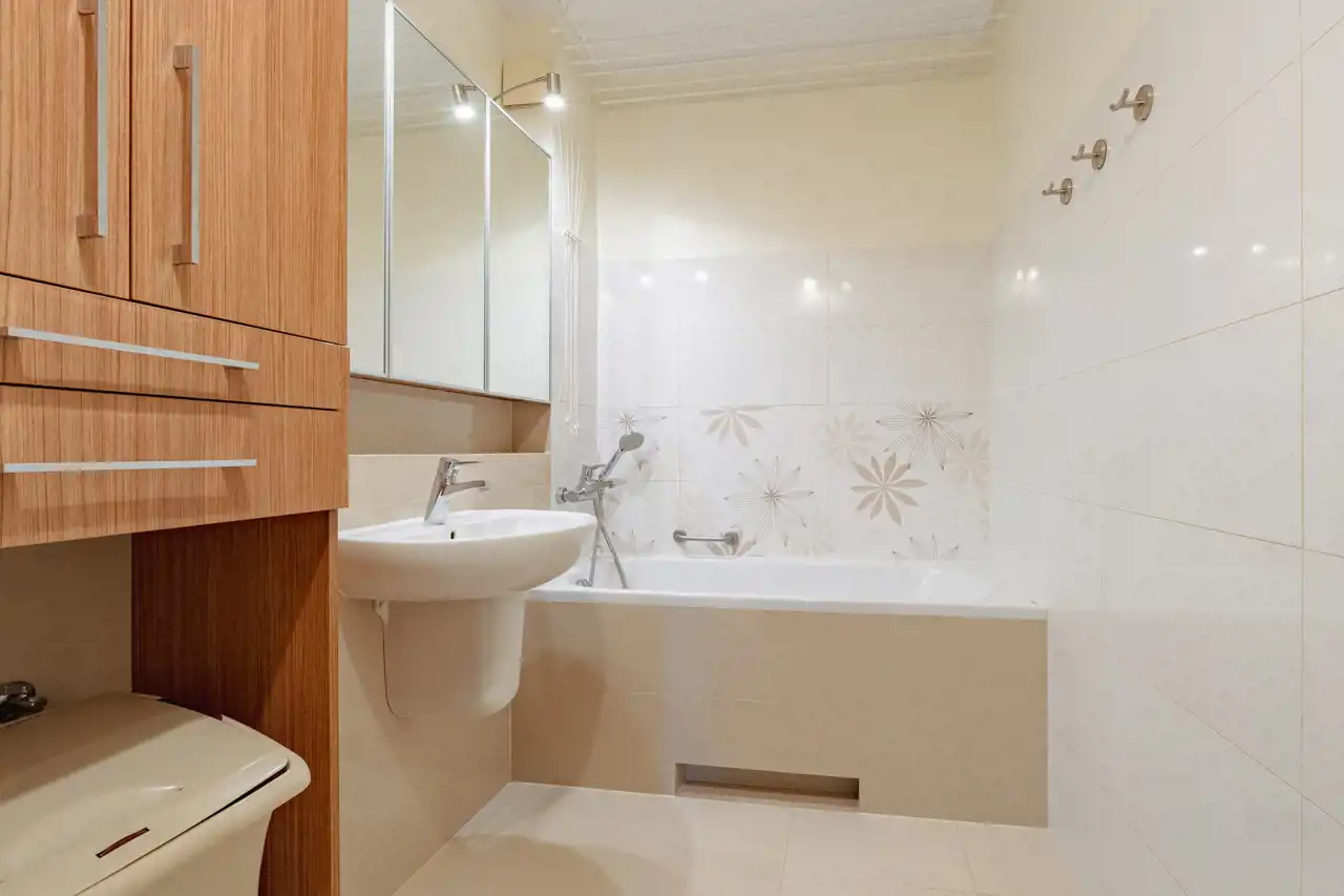 Przemyślany rozkład mieszkania zapewnia jego komfortowe użytkowanie. Dwie sypialnie plus duży salon z wyjściem na przynależny ogródek, kuchnia z jadalnią zapewniają poczucie przestrzeni.