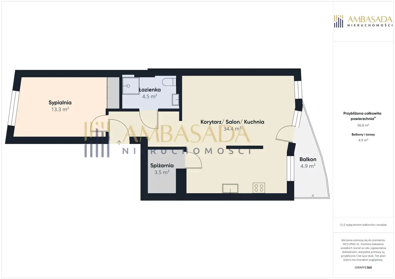- Charakterystyka mieszkania 55.5 m2, 2 pokoje