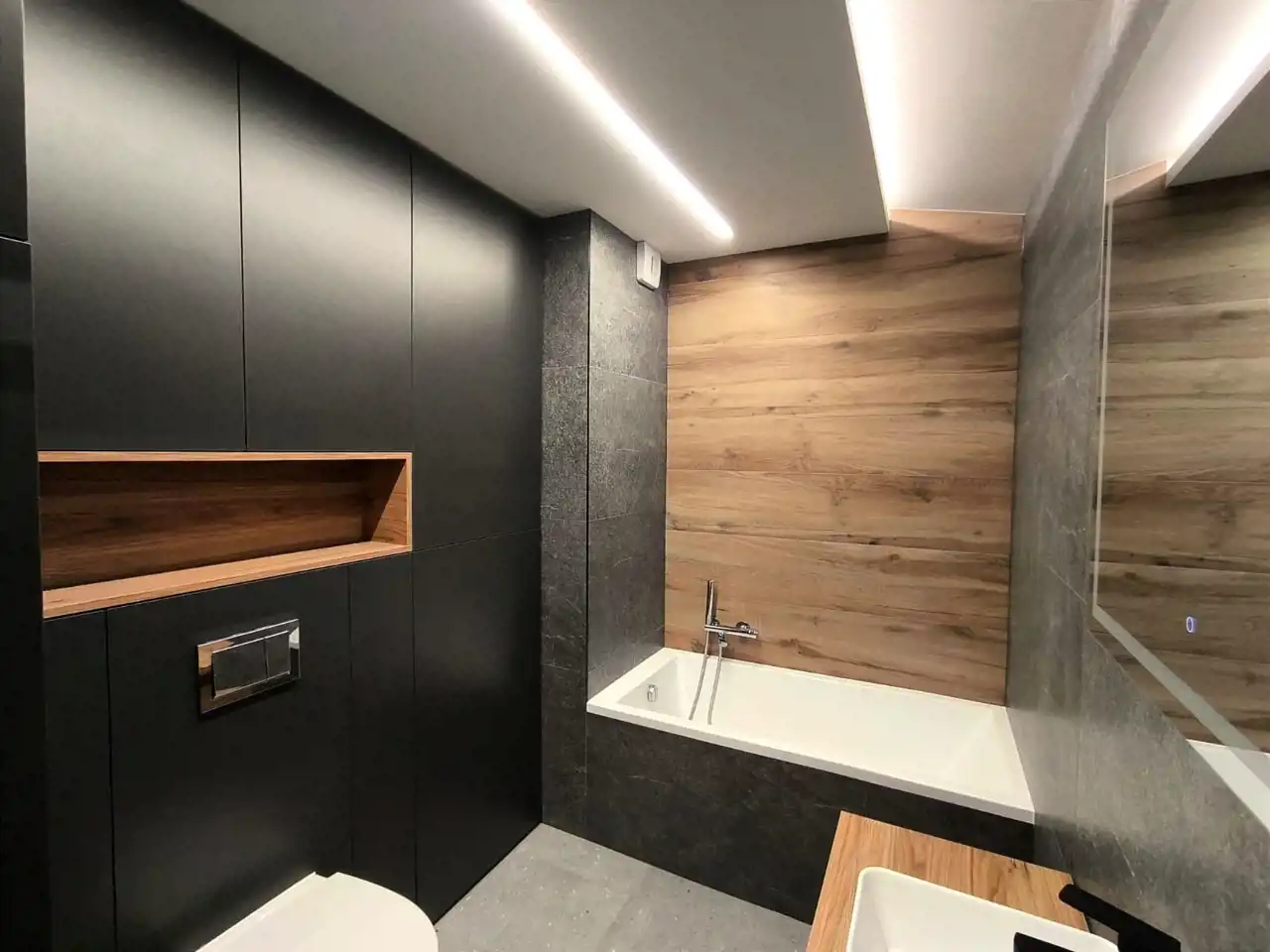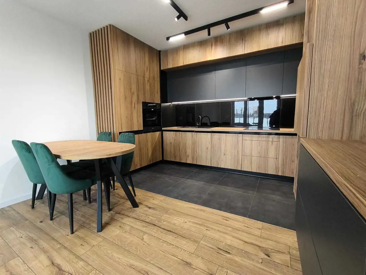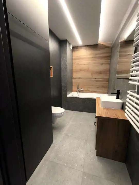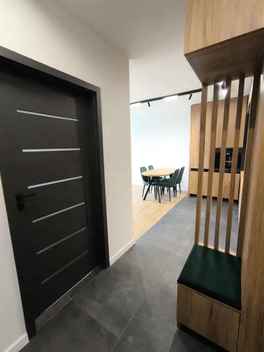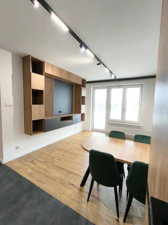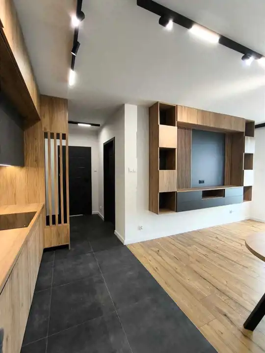 Mieszkanie zostało wykończone materiałami wysokiej jakości, kuchnia wyposażona w sprzęt AGD.