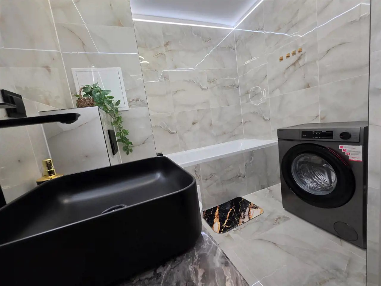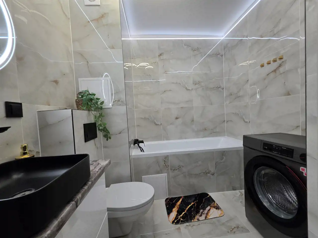 - Designerskie wyposażenie: Wnętrza zostały zaprojektowane z dbałością o każdy detal. W cenie otrzymujesz stylowe meble, wysokiej klasy zabudowę kuchenną oraz markowy sprzęt AGD.