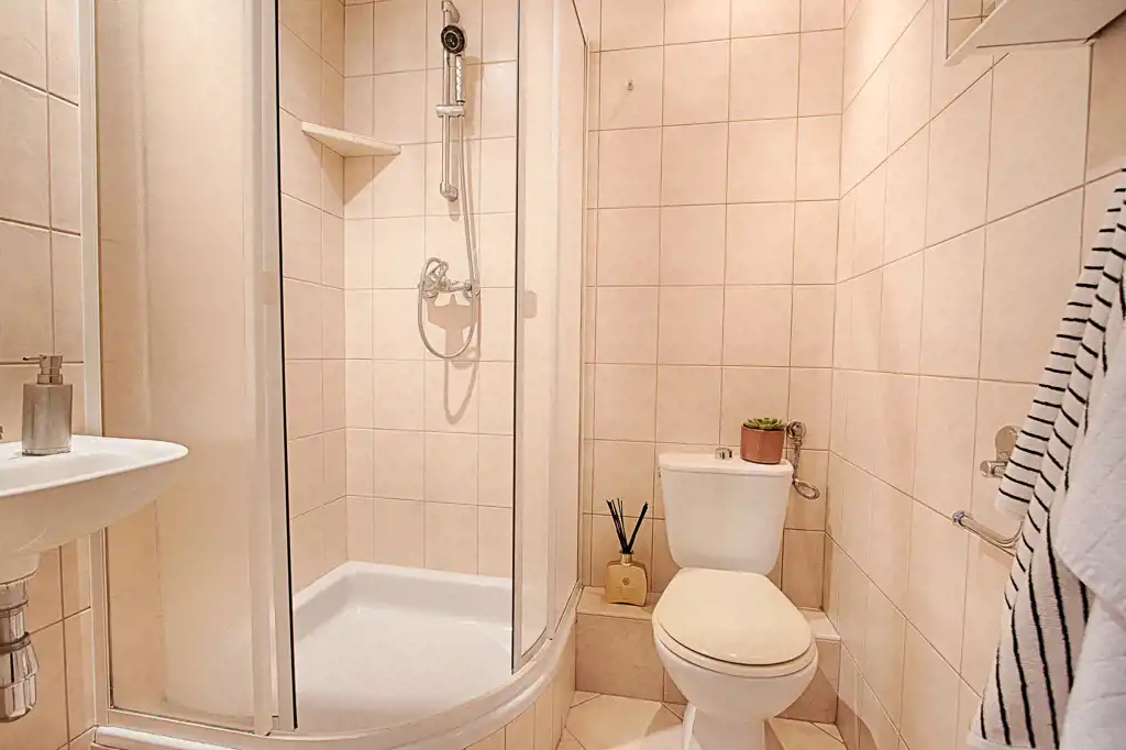- I poziom: salon z wyjściem na balkon, kuchnia, sypialnia, łazienka z WC i wanną, przedpokój,