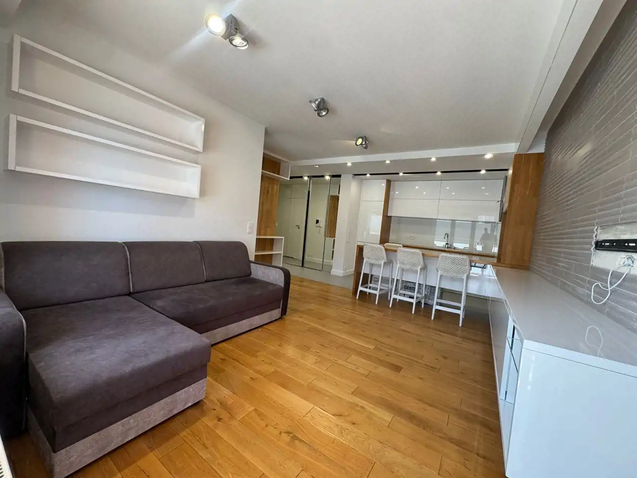 Dwa pokoje: kuchnia otwarta z salonem, sypialnia, łazienka z wc i garderoba.