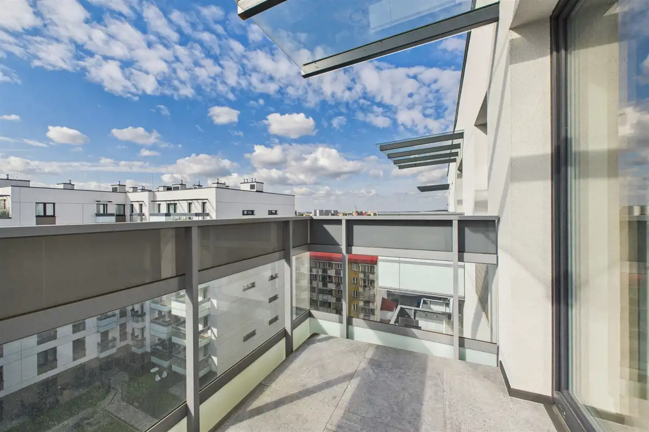 Mieszkanie położone na 7 piętrze w apartamentowcu z 2024 r. Gustownie wykończone i wyposażone w nowe sprzęty AGD. Nieruchomość posiada duży balkon z widokiem na panoramę miasta.