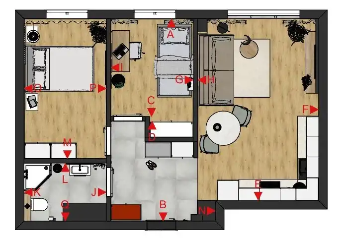 - Charakterystyka mieszkania 44.5 m2, 3 pokoje