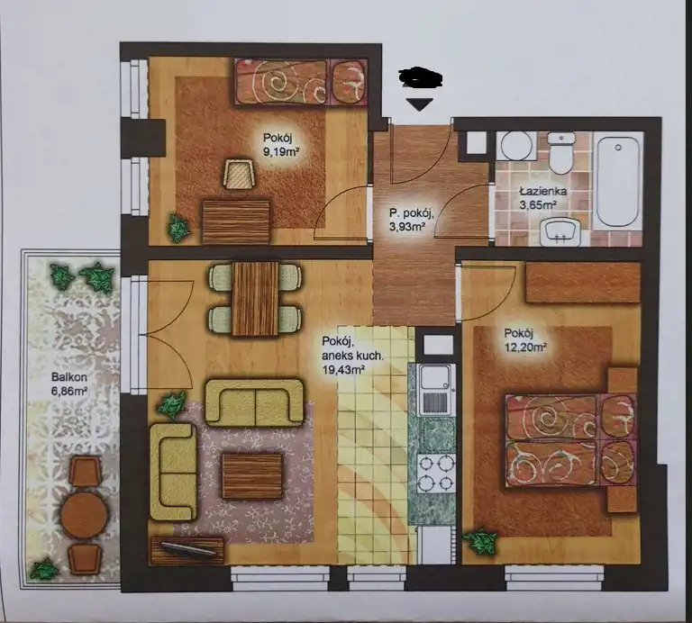 - Charakterystyka mieszkania 48.87 m2, 3 pokoje