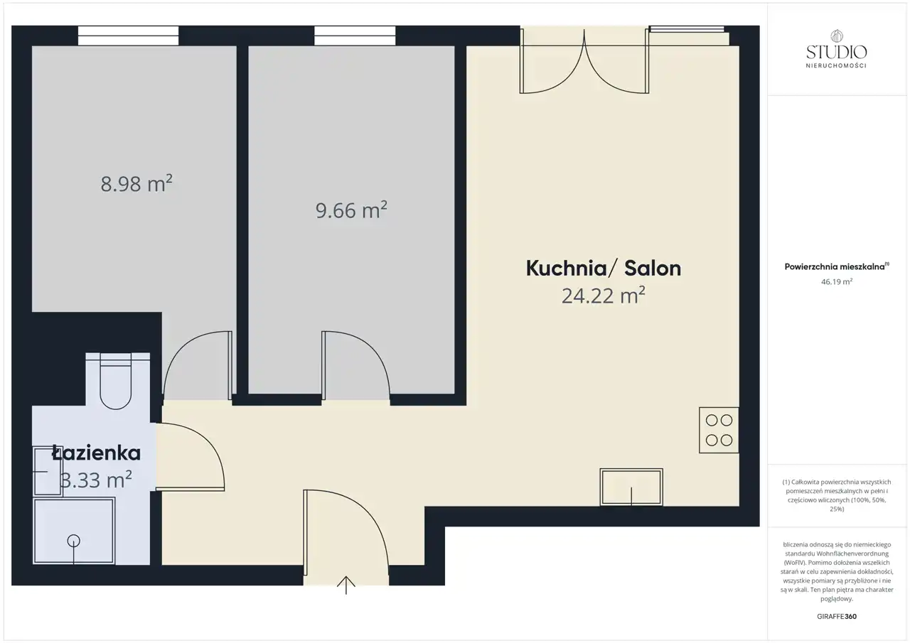 Opis oferty zawarty na stronie internetowej sporządzany jest na podstawie oględzin nieruchomości oraz informacji uzyskanych od właściciela, może podlegać aktualizacji i nie stanowi oferty określonej w art. 66 i następnych K.C.