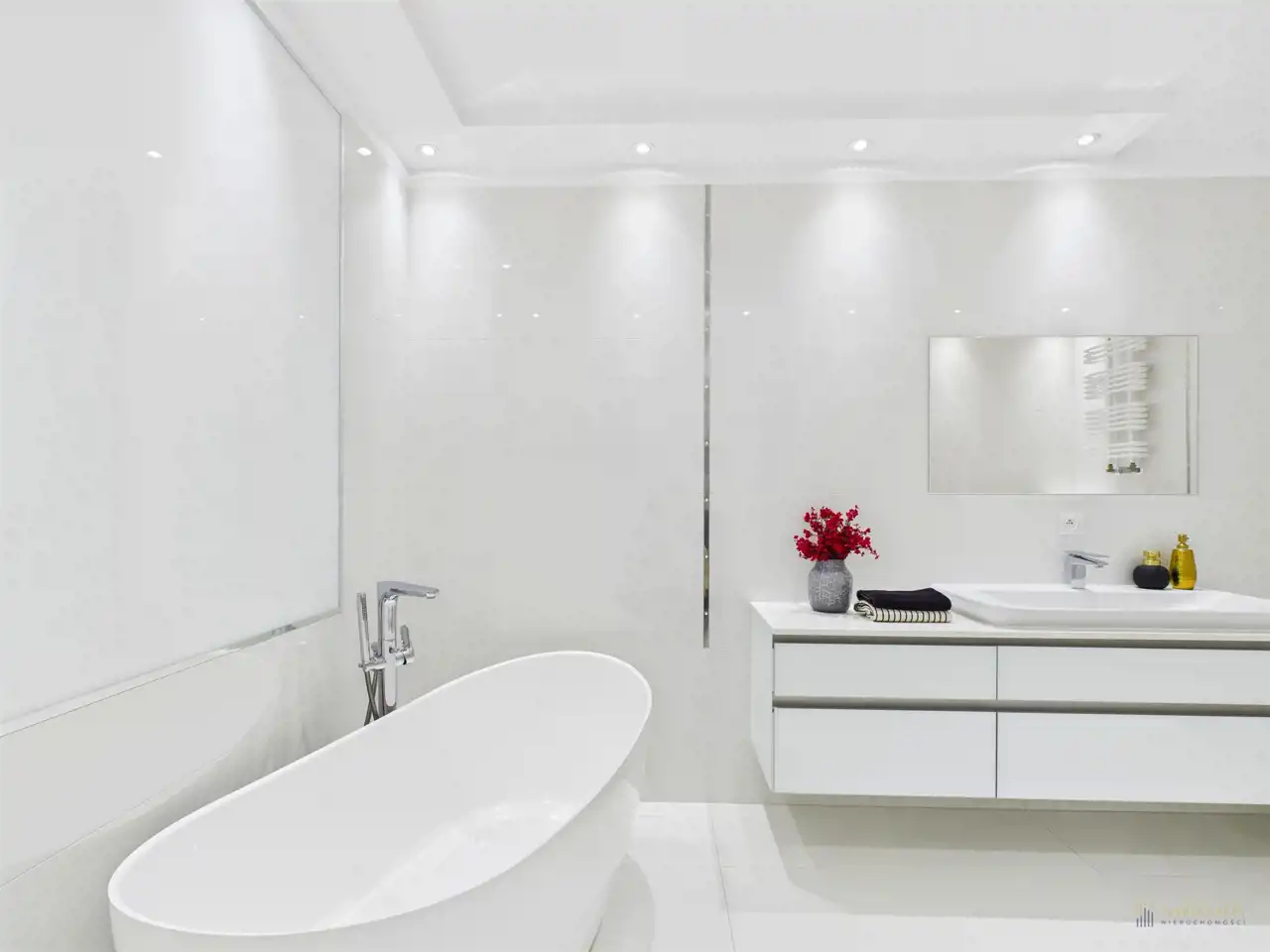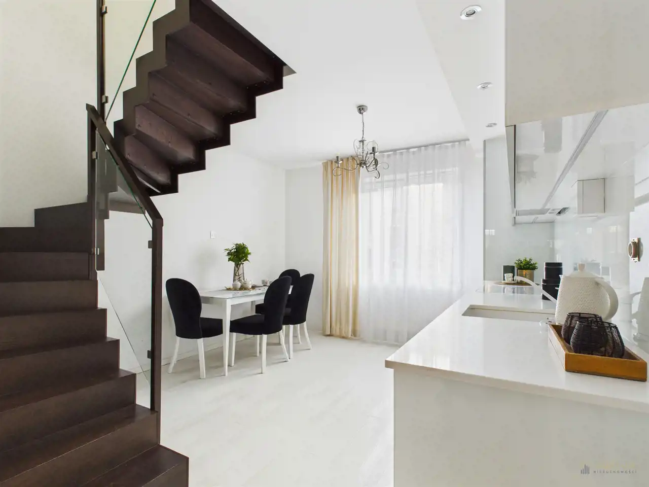 Wnętrza wykończone w nowoczesnym i funkcjonalnym stylu oraz wysokim standardzie. W 2021 r. przeszły gruntowny remont obejmujący m.in. wymianę podłóg, schodów oraz nowe zabudowy stałe. Przed ponownym wprowadzeniem wystarczy jedynie odświeżyć ściany.