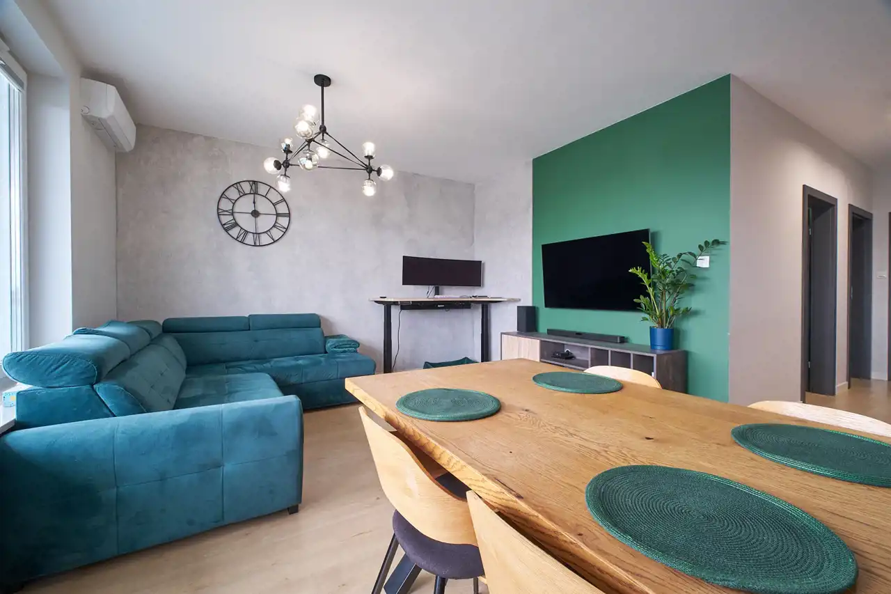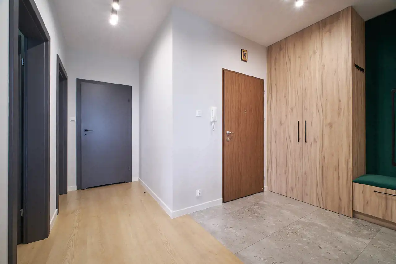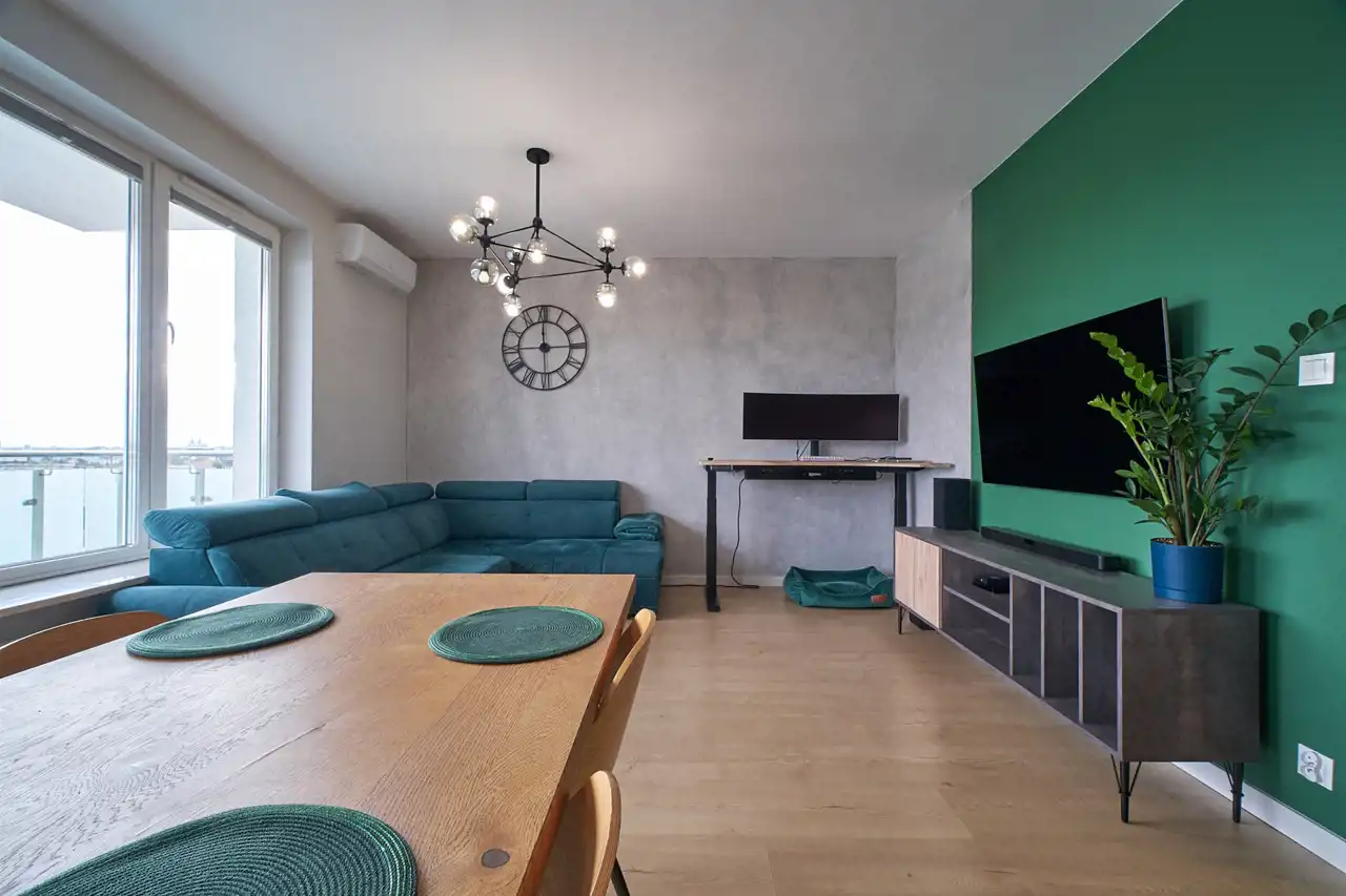 Apartament - Ten nowoczesny 3 pokojowy apartament został zaprojektowany z myślą o komforcie i funkcjonalności. Wnętrze łączy elegancki minimalizm z ciepłem naturalnych materiałów tworząc przestrzeń idealną do życia i relaksu.