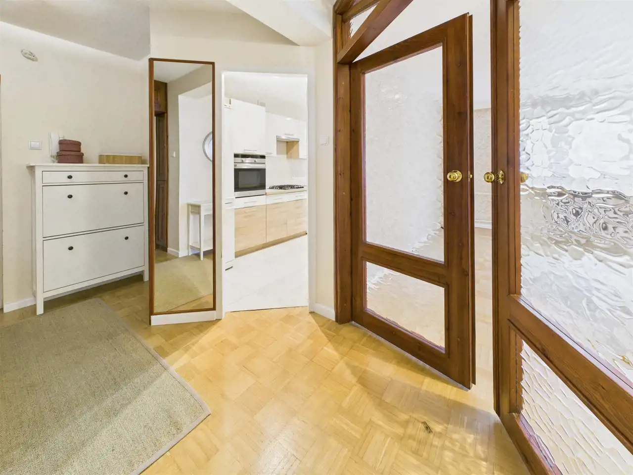 Przedpokój – jasny, wygodny, z drewnianą szafą ubraniową i praktycznymi schowkami.