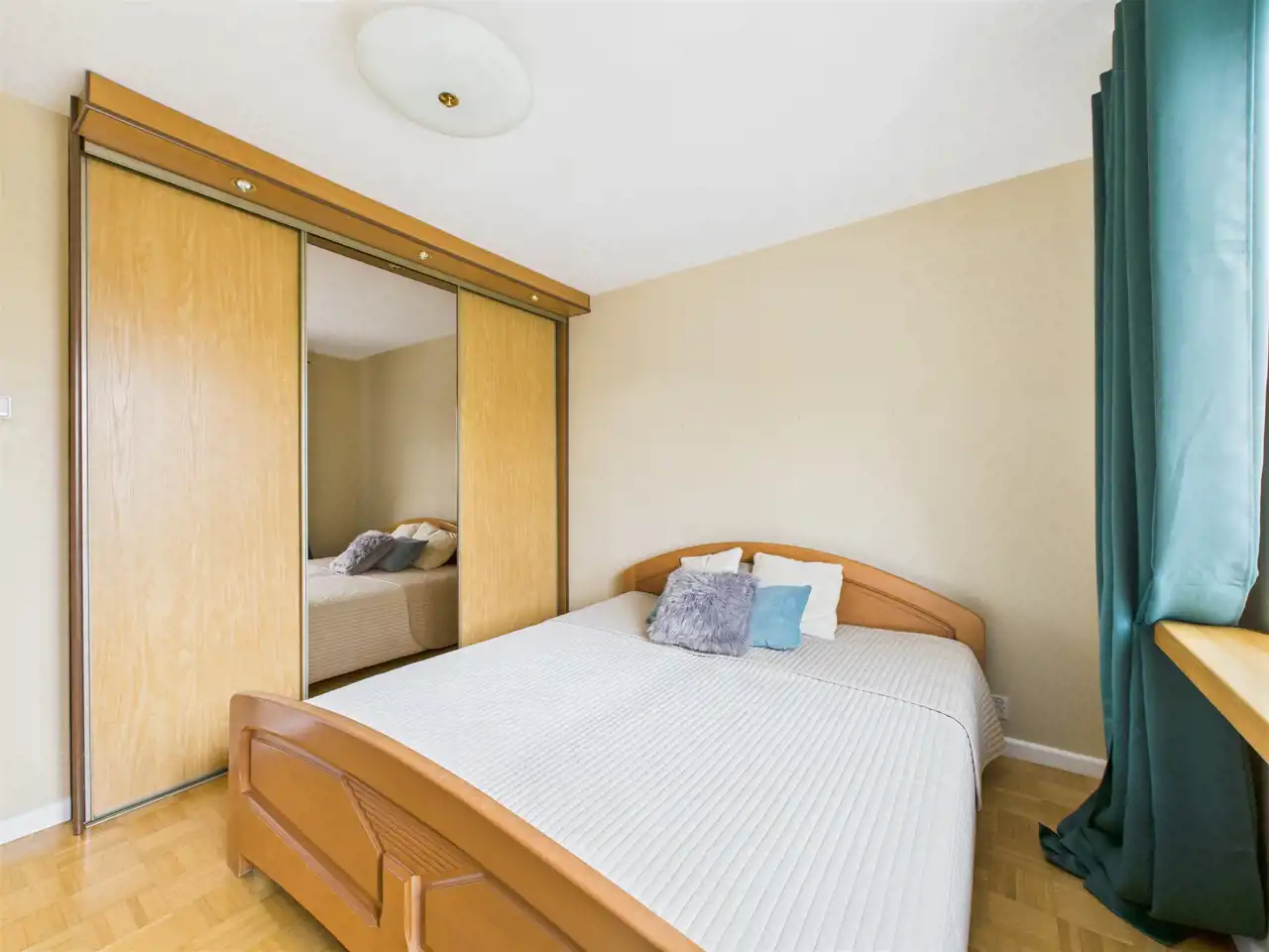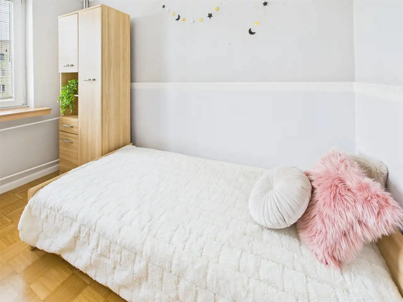 Główna sypialnia z dużym łóżkiem i szafą trzydrzwiową w zabudowie. Pozostałe pokoje doskonale sprawdzą się jako przestrzeń dla dzieci, gabinet lub pokój gościnny. -
