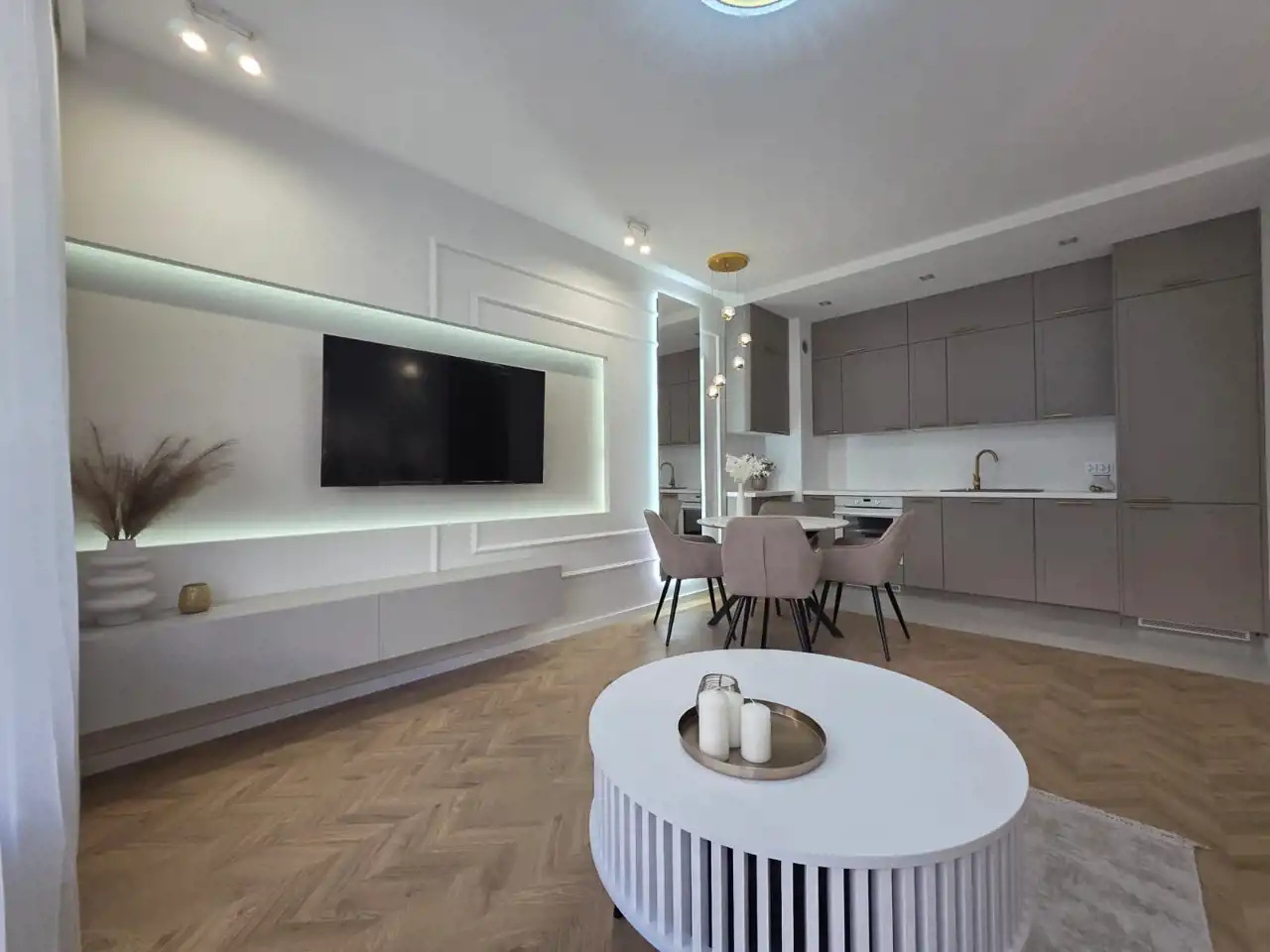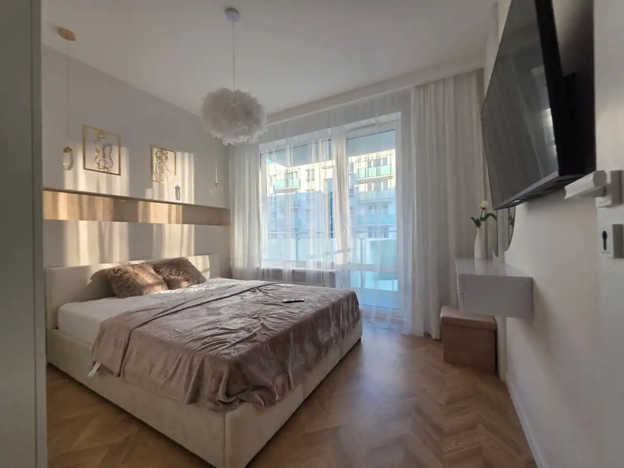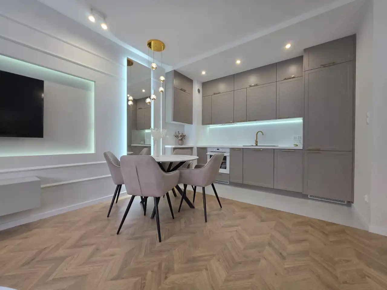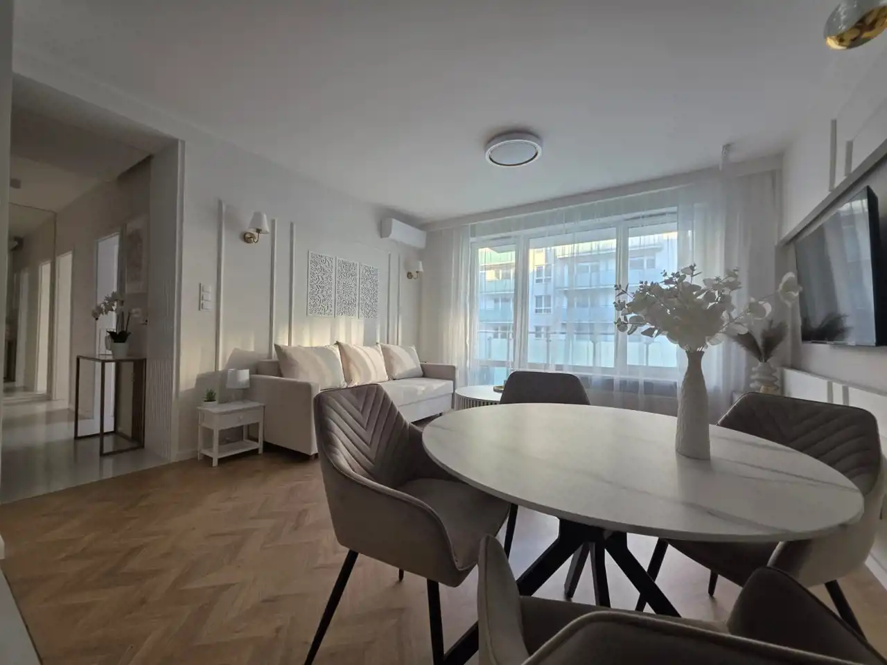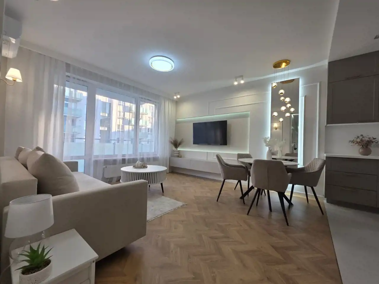 Mieszkanie zostało nowocześnie wykończone z dbałością o każdy detal, jest gotowe do zamieszkania bez dodatkowych nakładów. Komfort codziennego życia podnosi klimatyzacja oraz dwie przestronne balkony. W cenie pozostaje pełne wyposażenie widoczne na zdjęciach. Kuchnia wyposażona została w wysokiej klasy sprzęt AGD, w tym lodówkę, piekarnik, zmywarkę i płytę indukcyjną.