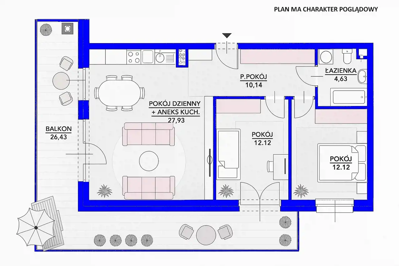 - Charakterystyka mieszkania 66.39 m2, 3 pokoje