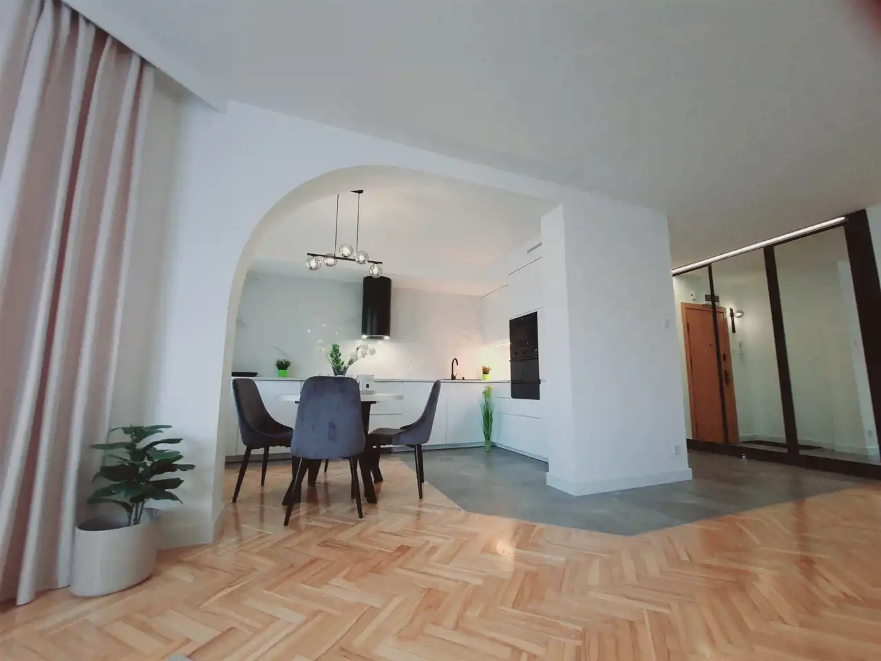 Po niewielkiej modyfikacji apartamentu - można uzyskać 3 oddzielne pokoje i oddzielną kuchnię.