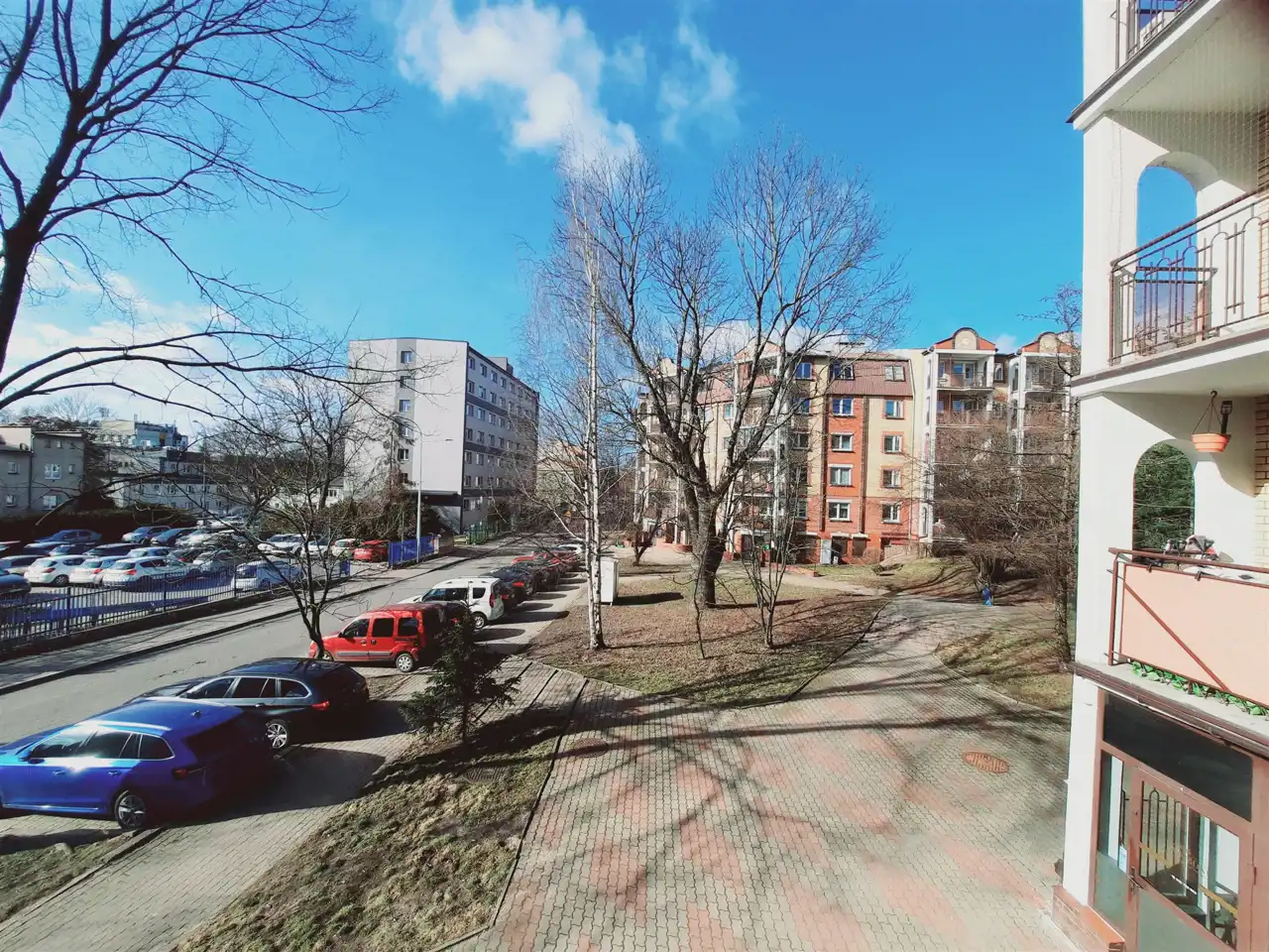 Przed budynkiem znajduje się ogrodzony parking przeznaczony tylko dla mieszkańców - brama wjazdowa na pilot.