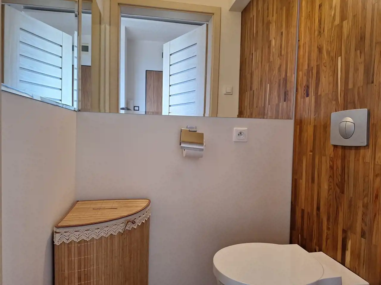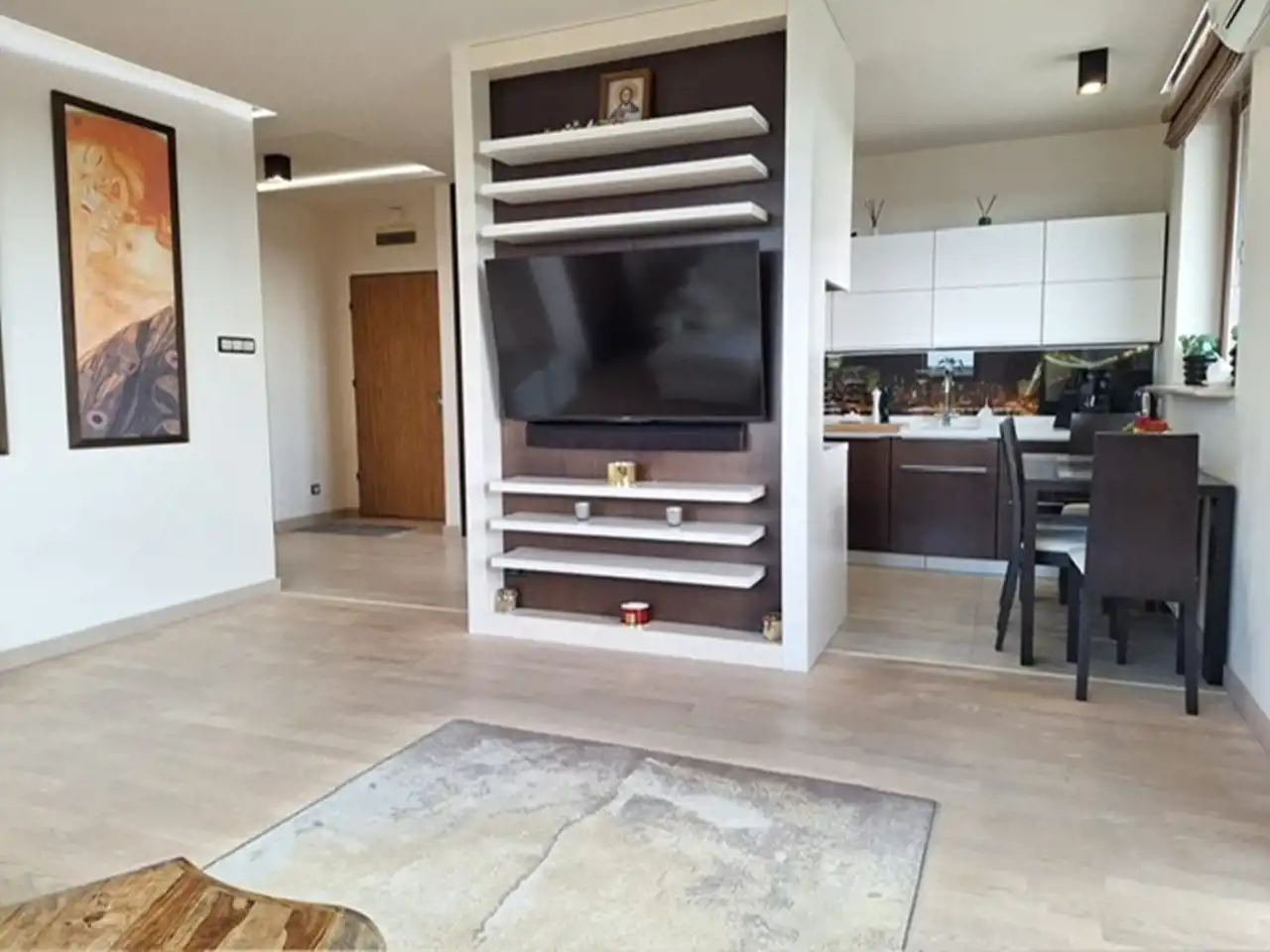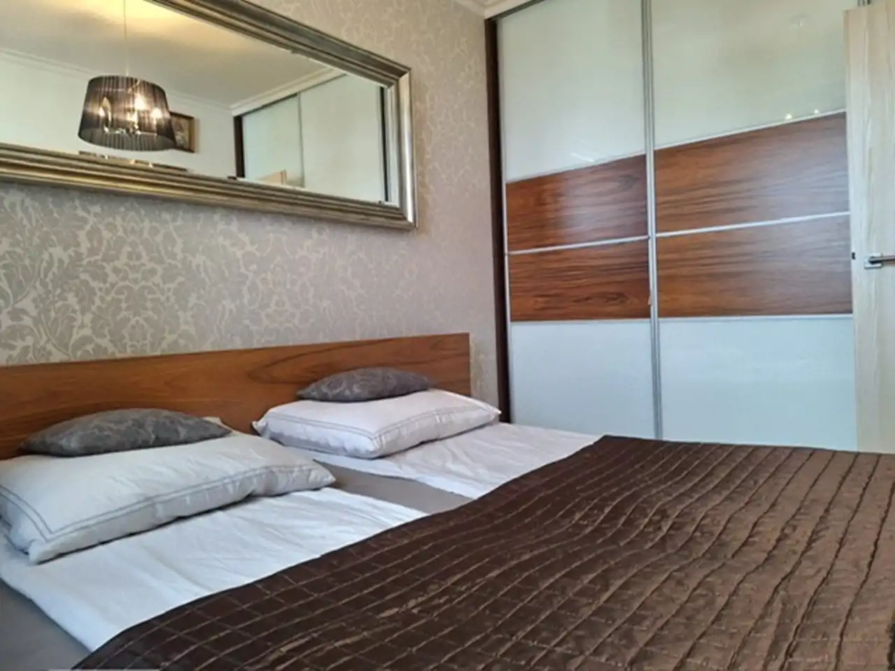 Apartament został wykończony z dbałością o jakość materiałów i funkcjonalność.
