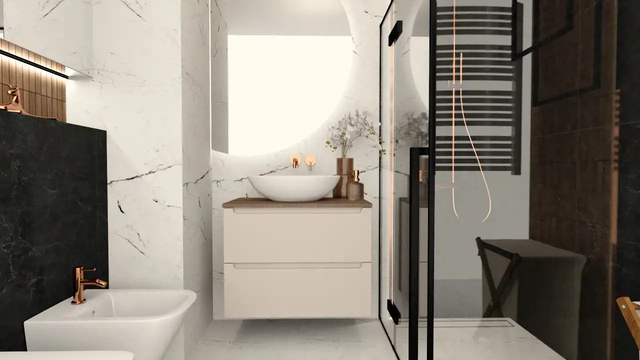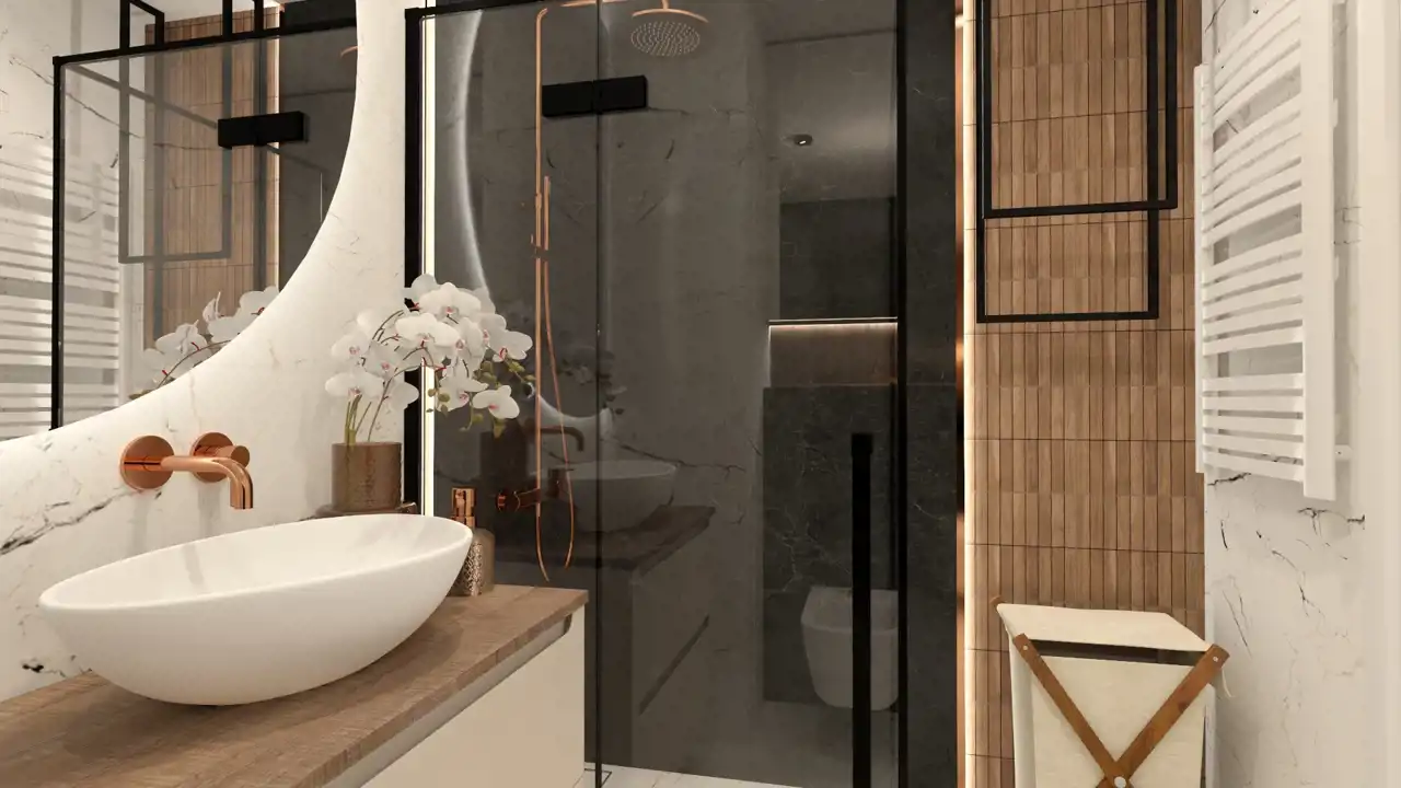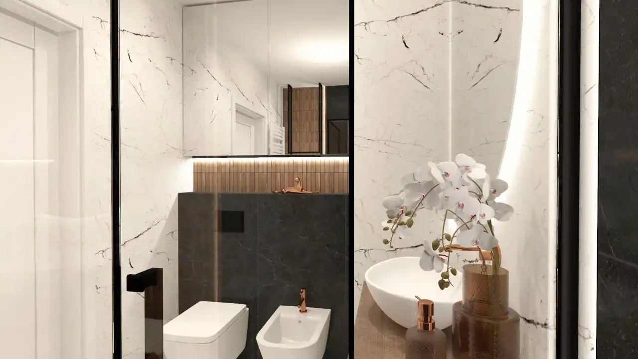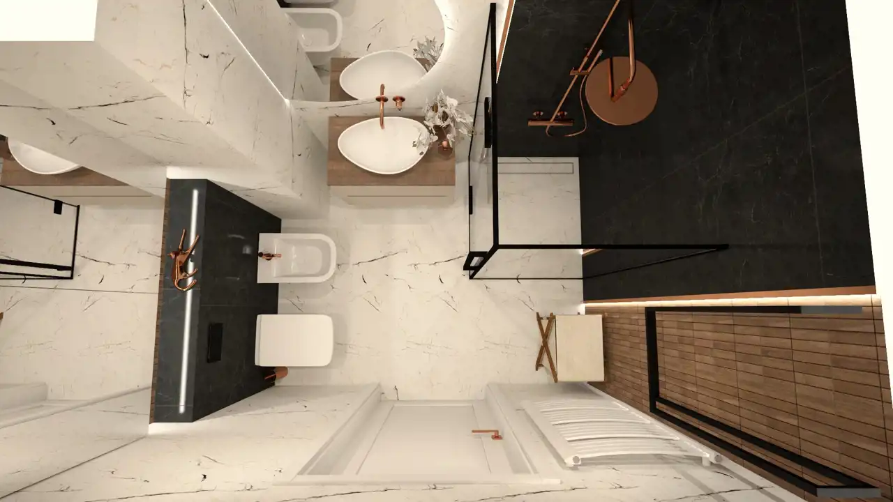 nowoczesna łazienka z dużą kabiną prysznicową oraz bidetem