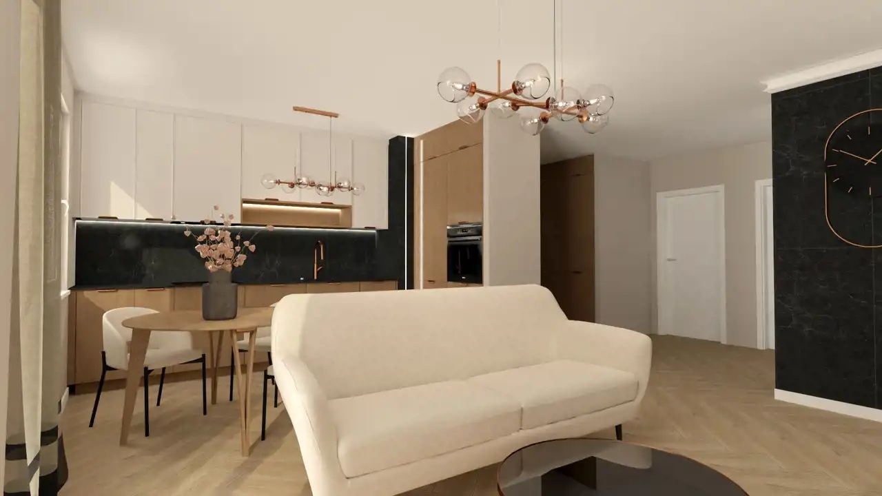 Mieszkanie jest dwustronne, doskonale doświetlone i zaprojektowane z myślą o komforcie codziennego życia. Wykończone w wysokim standardzie, gotowe do zamieszkania – bez dodatkowych nakładów finansowych.