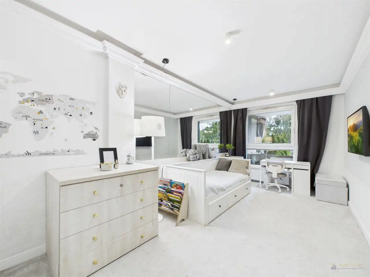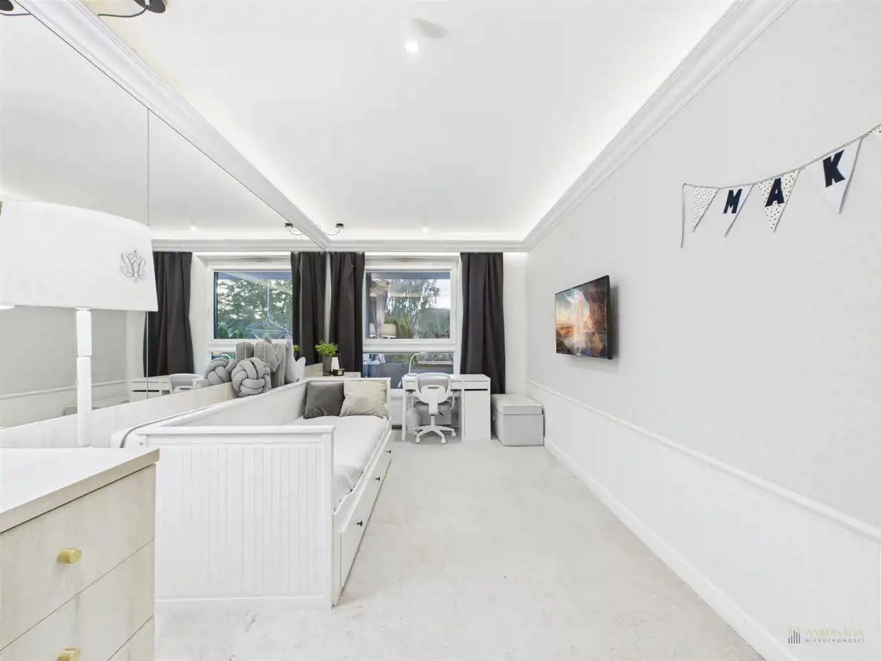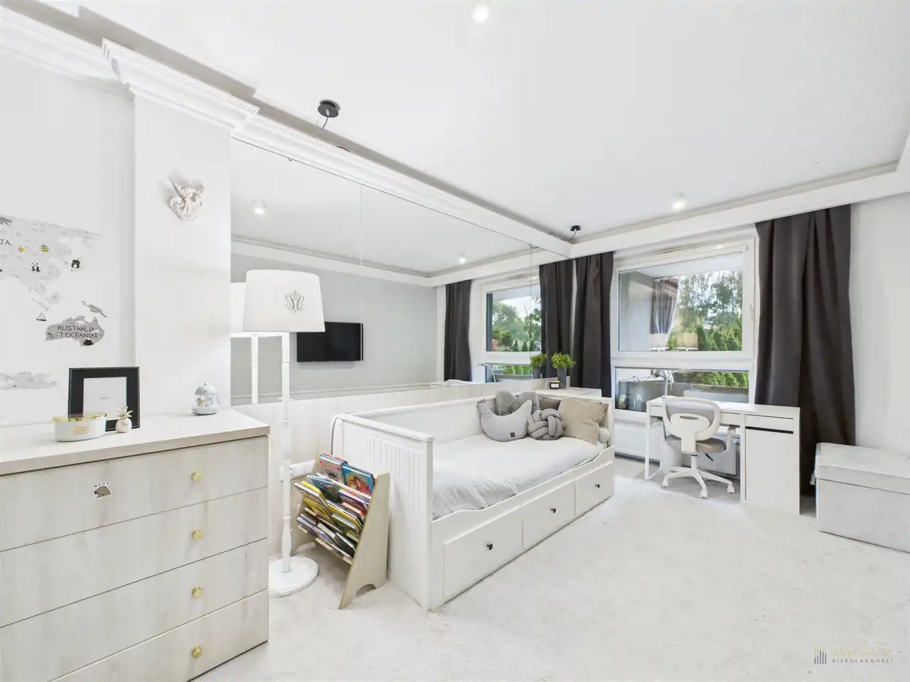 • Sypialnia – przestronna z garderobą i ścianą luster, które optycznie powiększają przestrzeń i dodają elegancji.