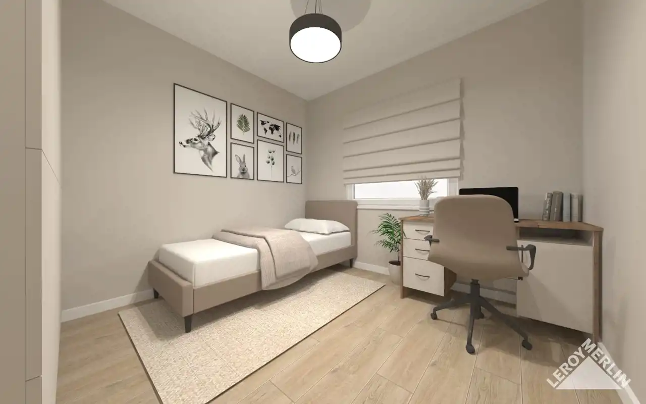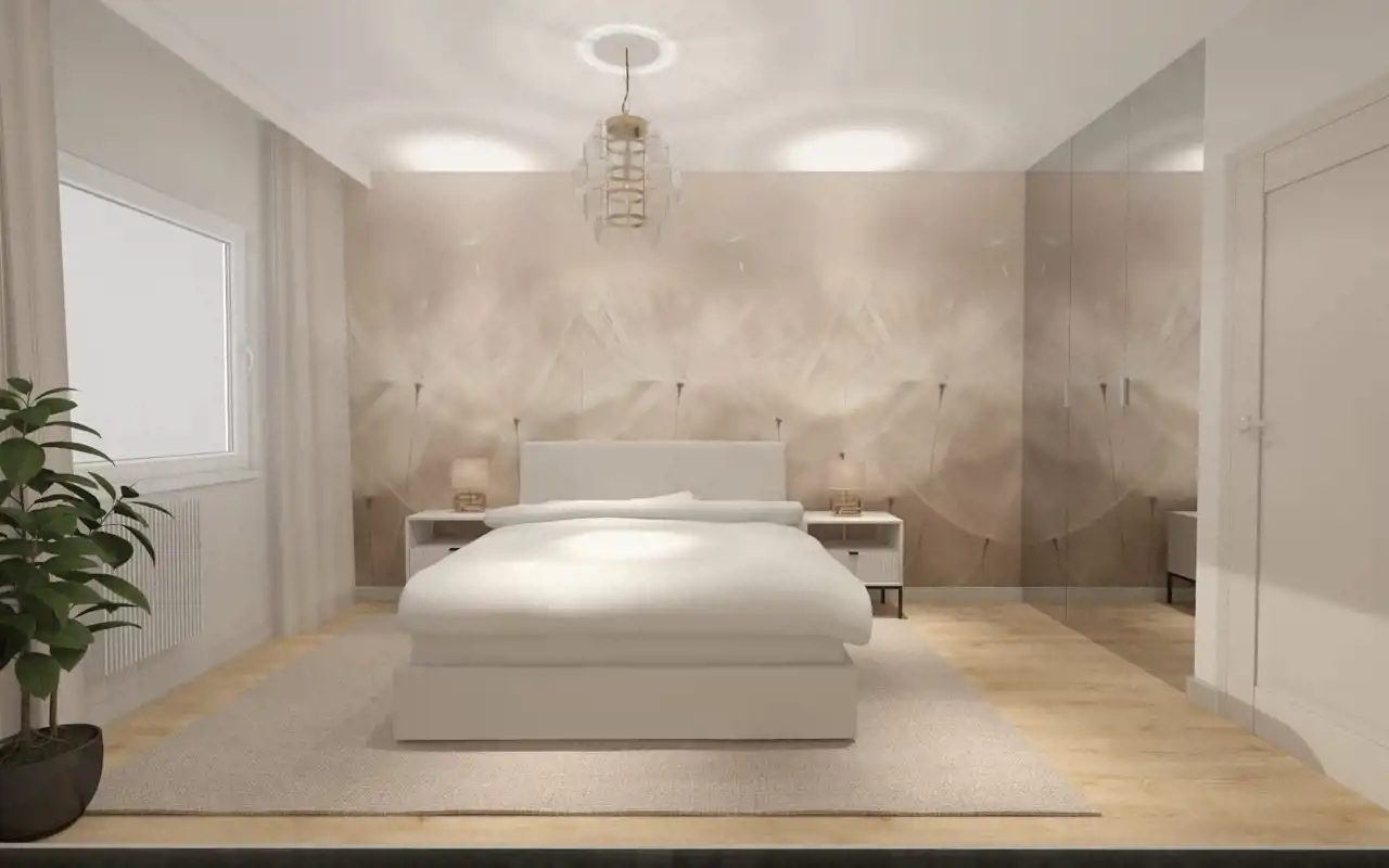 Całość urządzona z dbałością o detale - wszystkie elementy są starannie dobrane i spójne stylistycznie. Neutralna paleta barw umożliwia łatwe dopasowanie dodatków w dowolnej kolorystyce.