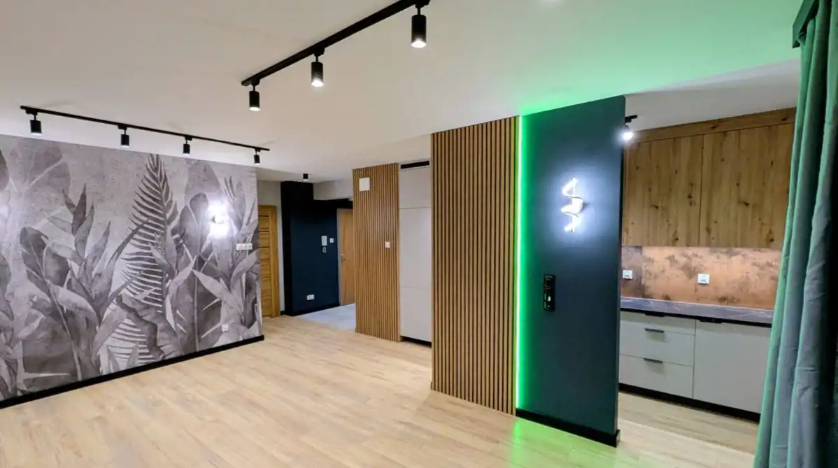 Mieszkanie o funkcjonalnym rozkładzie pomieszczeń, wyposażone w zabudowy stałe wliczone w cenę mieszkania.