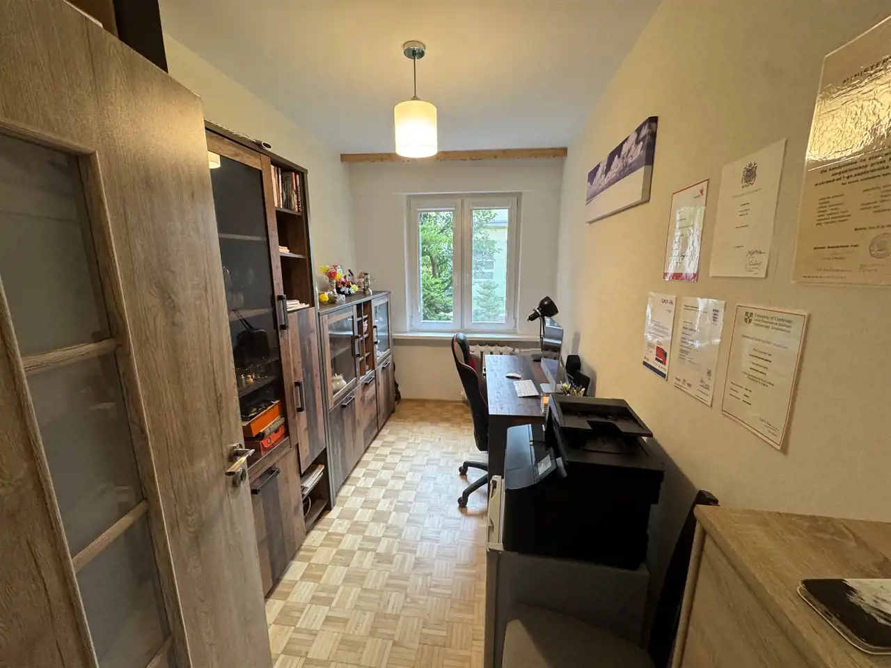 Mieszkanie jest położone przy ulicy Żelaznej i składa się z 4 pokoi: 2 sypialni, gabinetu i jadalni połączonej z kuchnia oraz holu i łazienki z WC.