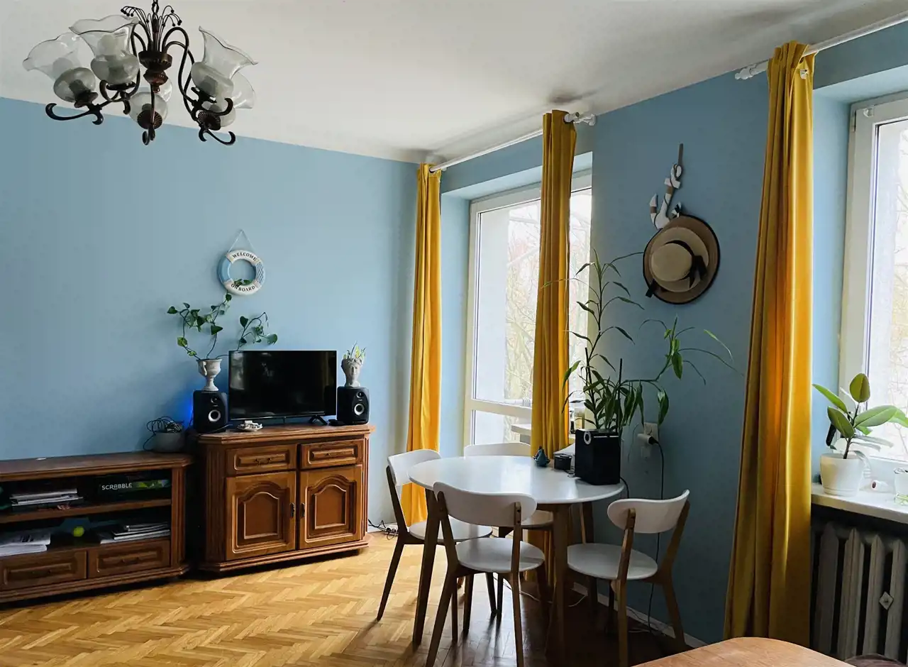 Mieszkanie jest bardzo słoneczne, z przyjemnym klimatem i wystrojem charakterystycznym dla starszych kamienicznych zabudowań