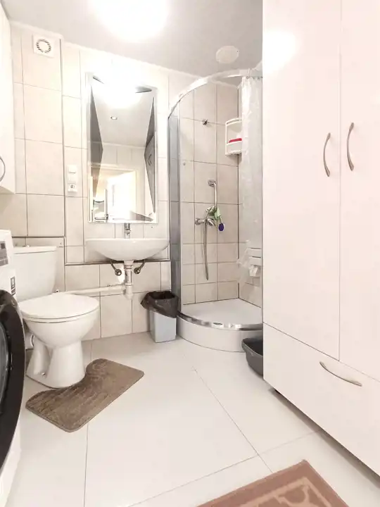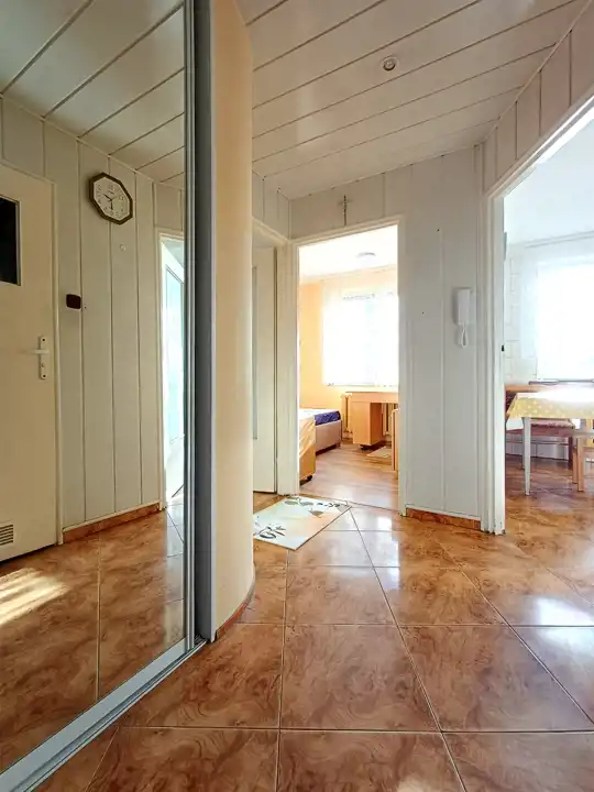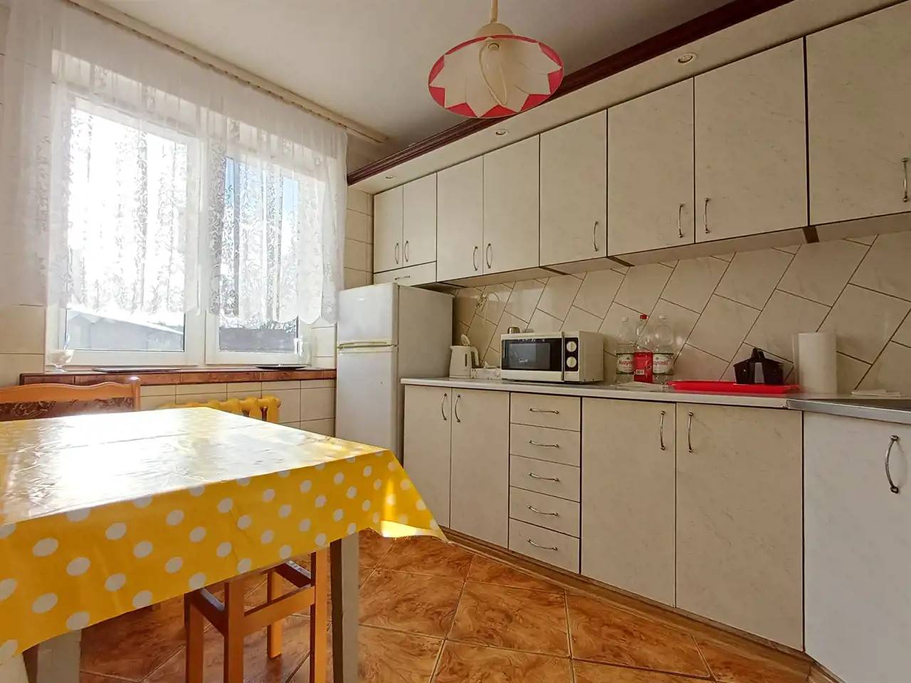 Mieszkanie jest gotowe do wejścia i wyposażone w podstawowe meble oraz sprzęty, w tym pralkę, lodówkę i łóżka. Budynek znajduje się na terenie ogrodzonym, w spokojnej, zielonej okolicy z dobrym dostępem do komunikacji miejskiej i sklepów.