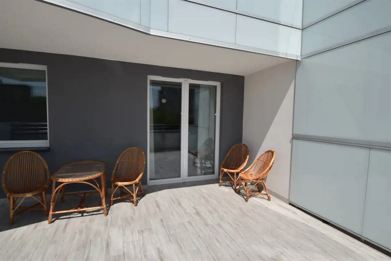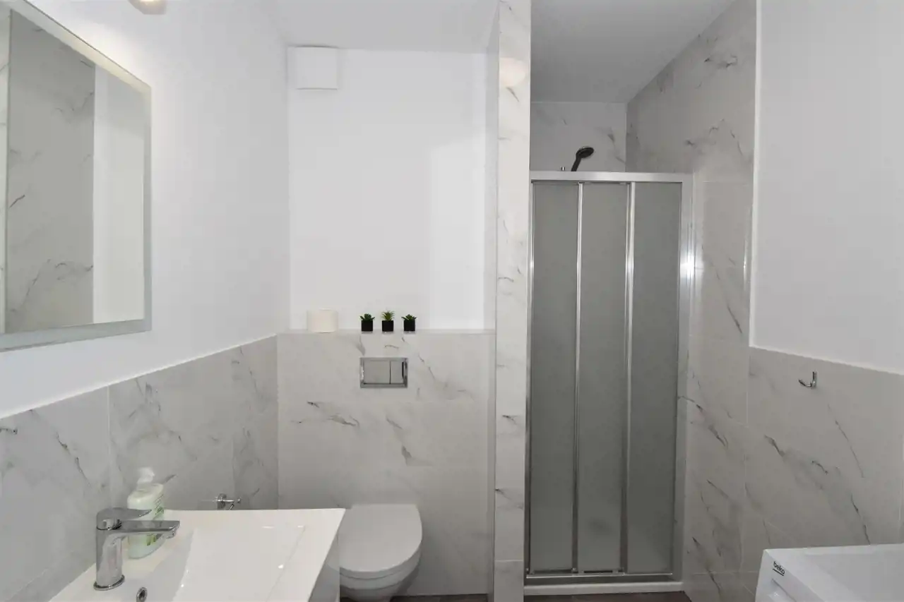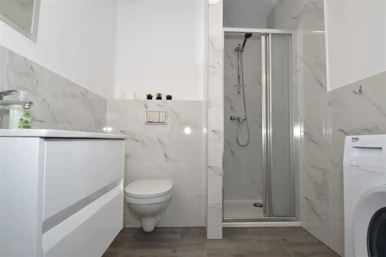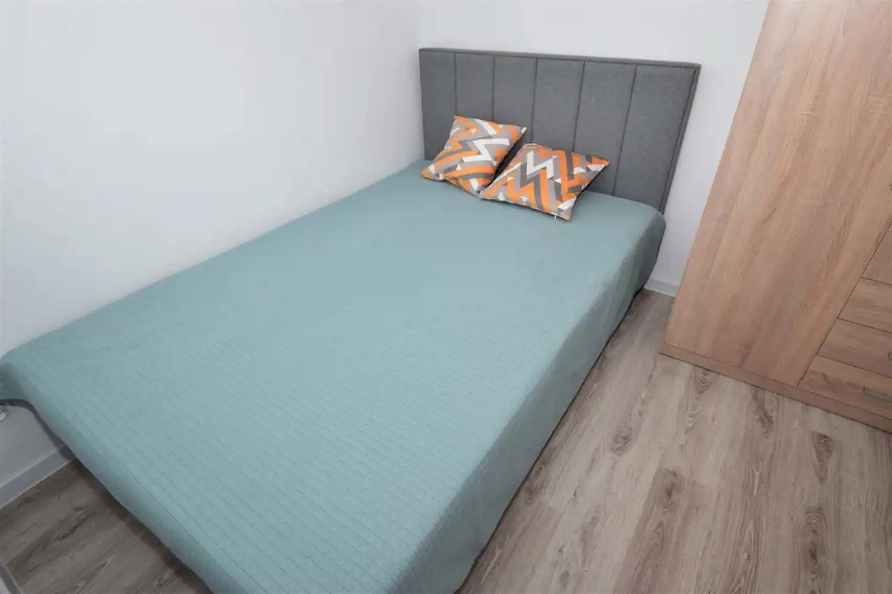 Oddzielna sypialnia, pokój dzienny z aneksem kuchennym , łazienka z prysznicem. Pełne wyposażenie sprzęt AGD oraz łóżko, szafa, pralka.