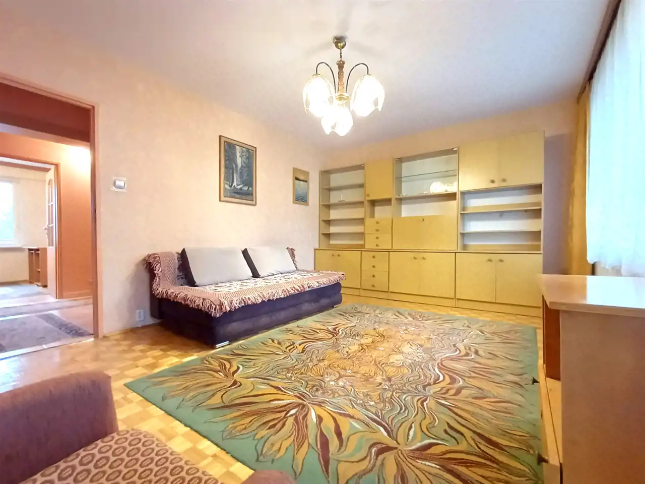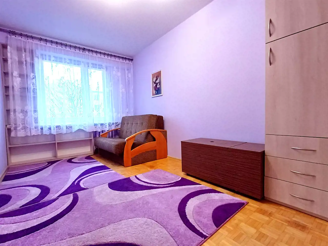 Mieszkanie jest rozplanowane funkcjonalnie i składa się z oddzielnej kuchni (kuchenka gazowa, piekarnik, lodówka), czterech niezależnych pokoi, łazienki, WC oraz przestronnego korytarza. Z salonu prowadzi wyjście na duży balkon o powierzchni 4 m². Do mieszkania przynależy także piwnica o powierzchni 2 m². Mieszkanie jest zadbane i gotowe do zamieszkania.