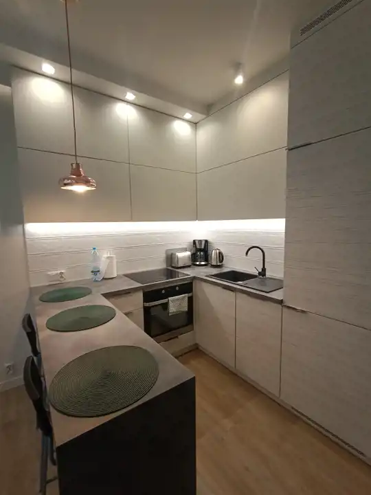 Mieszkanie jest wykończone, umeblowane i wyposażone we wszystkie niezbędne sprzęty AGD i RTV - nic, tylko wnosić walizki i mieszkać!