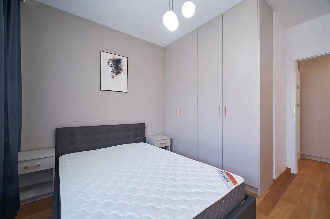 Nowy 2 pokojowy apartament o powierzchni 36 m2 składający się z pokoju z aneksem kuchennym, sypialni i łazienki z WC. Lokal jest całkowicie urządzony i wyposażony we wszystkie zupełnie nowe meble i urządzenia AGD widoczne na zdjęciach. Budynek z nowoczesną windą.