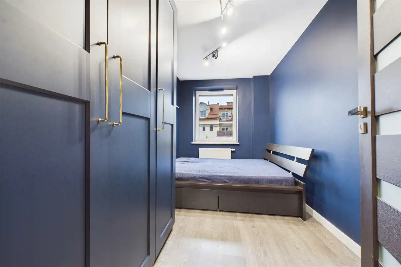 Mieszkanie jest w pełni wyposażone – zarówno w meble, jak i niezbędne RTV i AGD, co pozwala wprowadzić się od razu, bez dodatkowych kosztów.