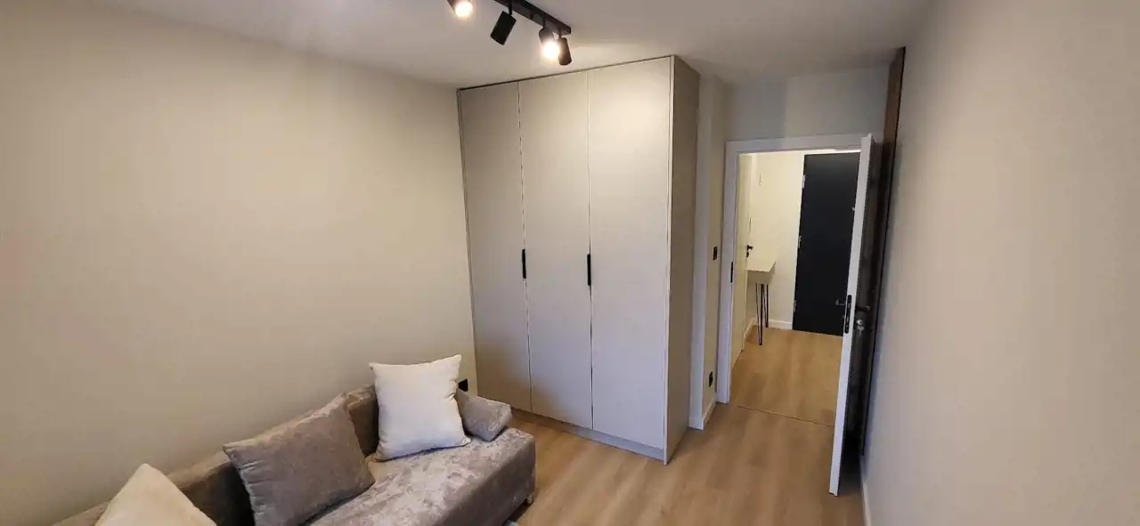 Lokal składa się z: sypialni, salonu z którego jest wyjście na duży, taras o pow. ok. 7m2, aneksu kuchennego, przestronnej łazienki z wc oraz przedpokoju. Mieszkanie zostało wykończone według najnowszych trendów i jest gotowe do wejścia. W mieszkaniu znajduje się zabudowa kuchni, wraz ze sprzętem AGD: zmywarka, lodówko-zamrażarka, płyta indukcyjna, piekarnik. Sypialnia została wyposażona w następujące meble: rozkładana sofa, szafa ubraniowa typu Komandor. W przedpokoju jest duża, pojemna szafa w zabudowie, w łazience z wc znajduje się: prysznic, szafki w zabudowie, pralka automatyczna.